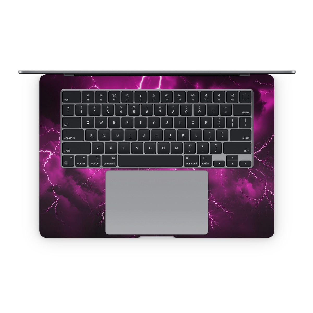 iStyles Apple MacBook Skin design of Sky, Thunder, Lightning, Thunderstorm, Atmosphere, White, Purple, Light, Nature, Water, with black, pink colors, and tagged with patterns, nature, lightning, sky, thunderstorm, storm, electricity.