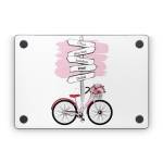 iStyles Apple MacBook Skin design of Bicycle, Wheel, Bicycles--Equipment and supplies, Tire, Bicycle tire, Bicycle frame, Bicycle wheel, Bicycle wheel rim, Vehicle, Bicycle fork, with white, black, red, pink colors, and tagged with signs, objects, flowers, patterns, bike, flowers, pink, travel, paris, new, york, london, sydney, dubai.