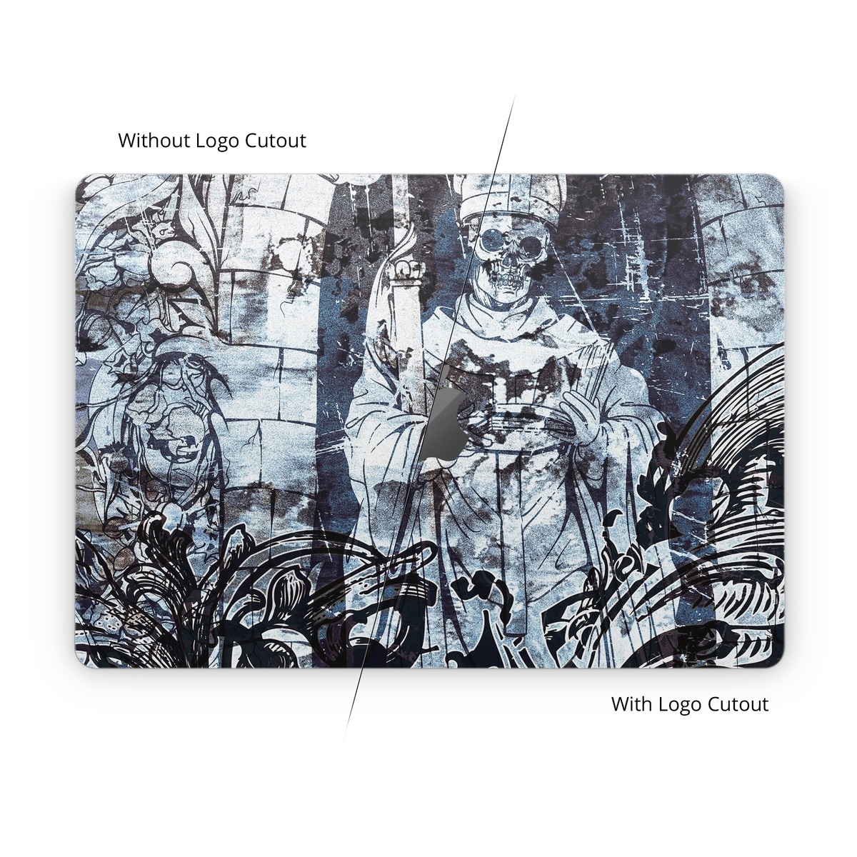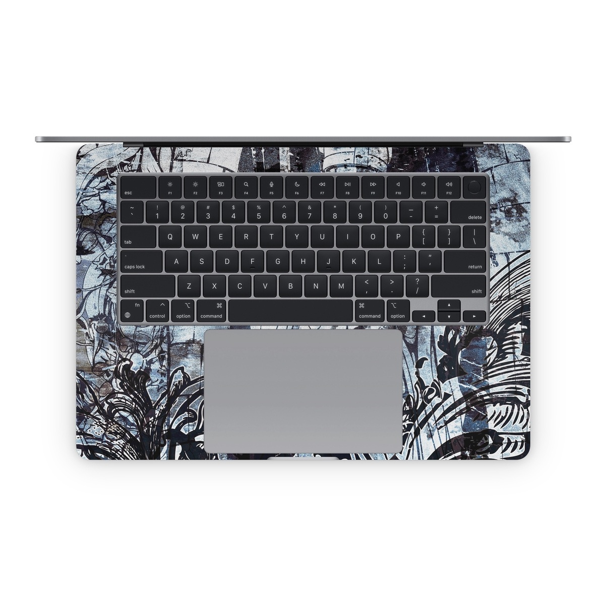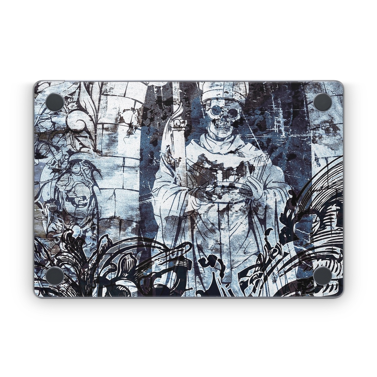 iStyles Apple MacBook Skin design of Illustration, Art, Monochrome, Visual arts, Drawing, Black-and-white, Graphic design, Fictional character, Fiction, Sketch, with white, black, blue, gray colors, and tagged with skulls.