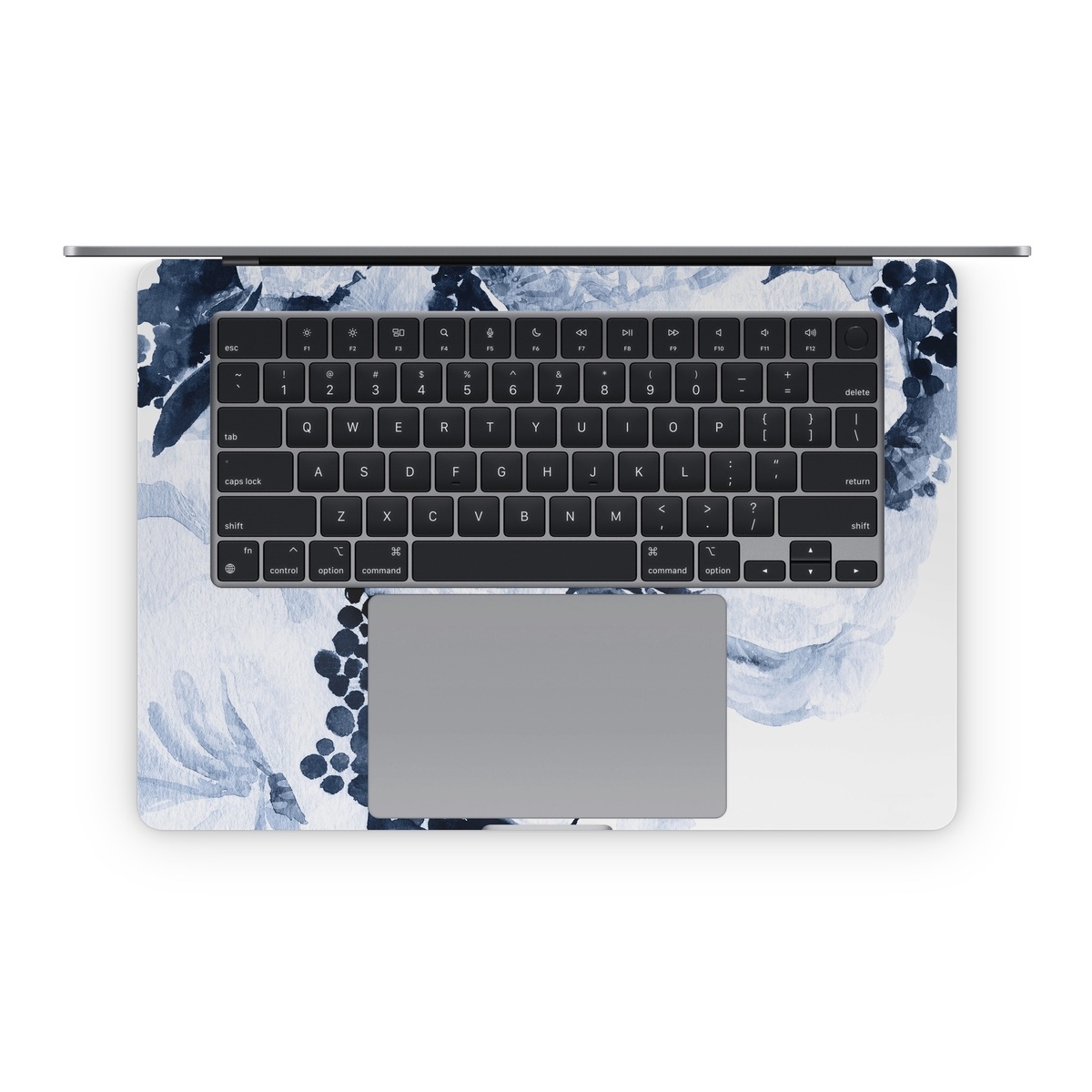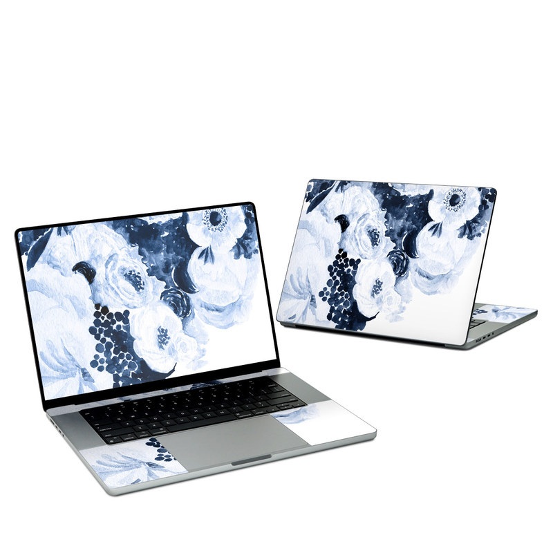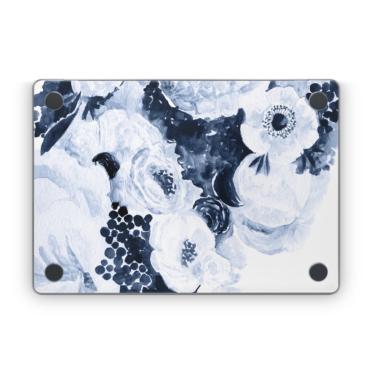 iStyles Apple MacBook Skin design of White, Flower, Cut flowers, Garden roses, Plant, Bouquet, Rose, Black-and-white, Rose family, Still life, with white, blue colors, and tagged with flowers, blue, bouquet, floral, flowers, watercolor.