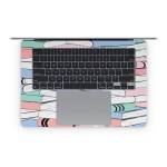 iStyles Apple MacBook Skin design of White, Line, Material property, Red, Font, Pattern, Parallel, Carmine, Rectangle, Slope, with white, black, blue, green, pink colors, and tagged with objects, patterns, books, stack, background.