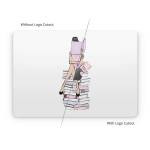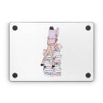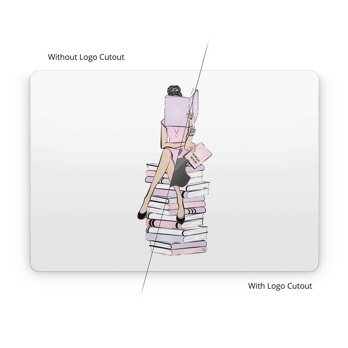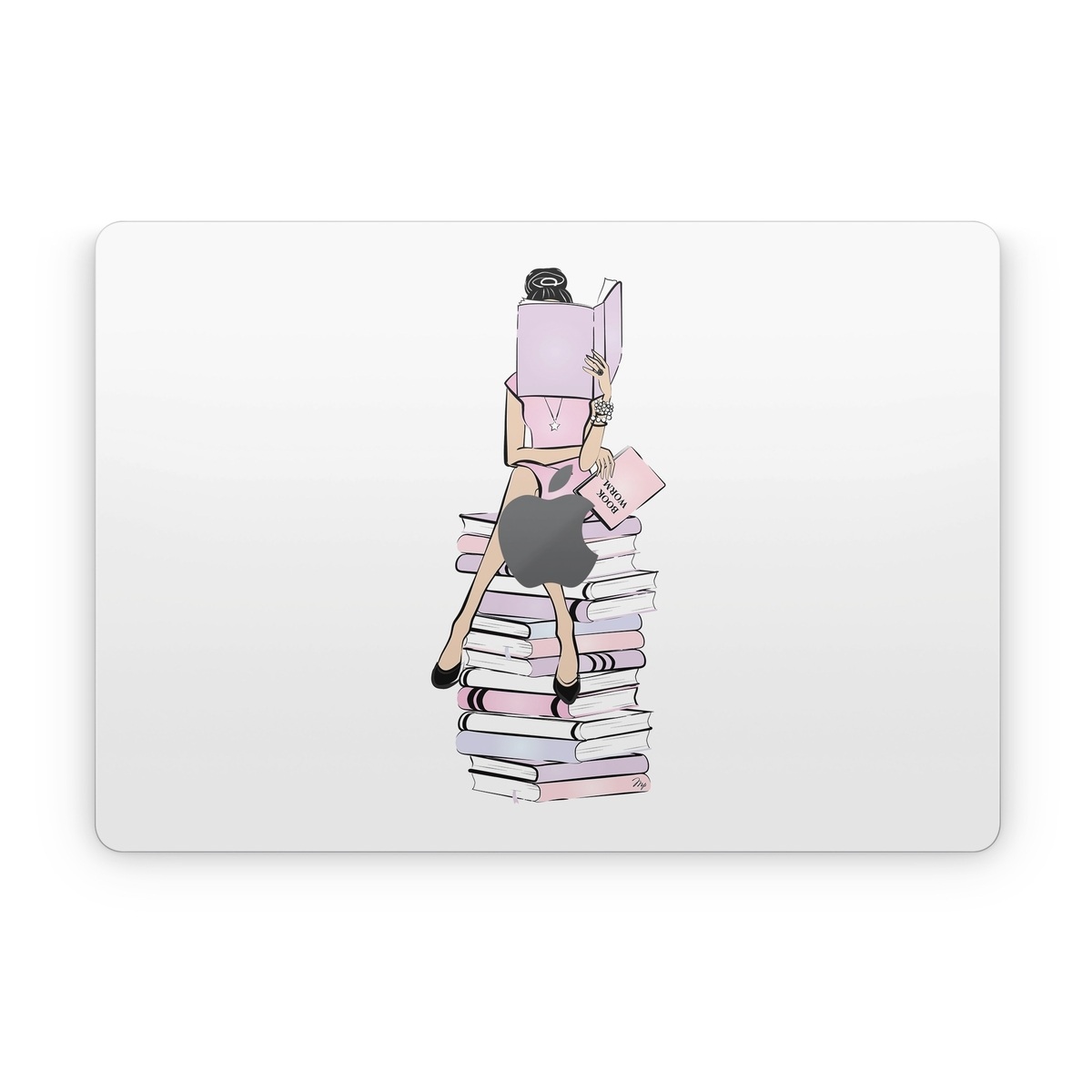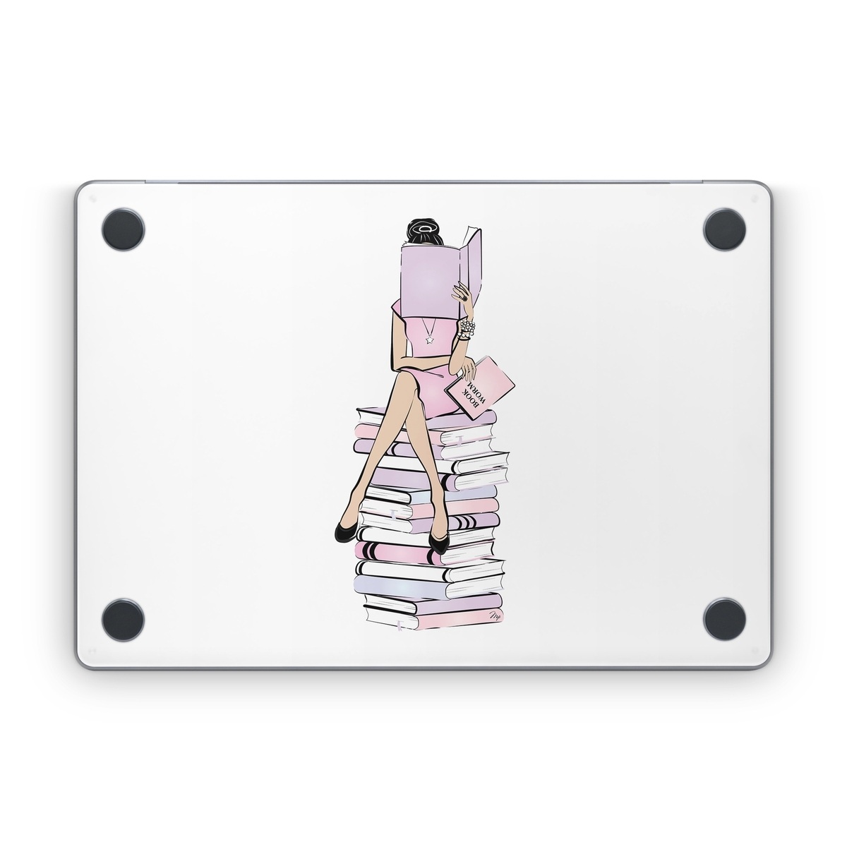 iStyles Apple MacBook Skin design of Gesture, Art, Cartoon, Font, Drawing, Illustration, Painting, Fictional character, Animation, Diagram, with black, white, pink, purple, blue, yellow, brown colors, and tagged with signs, objects, people, books, girl, pink, purple, reading.