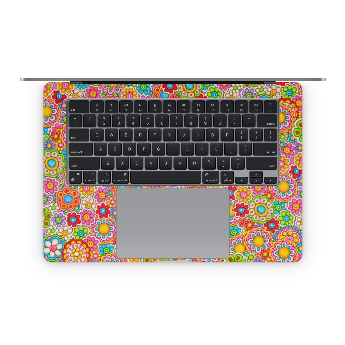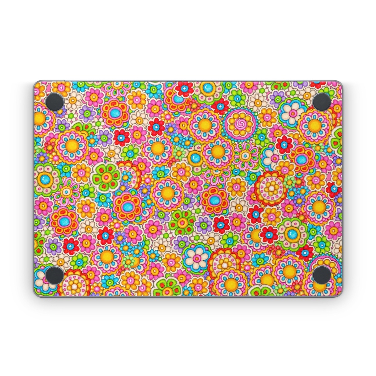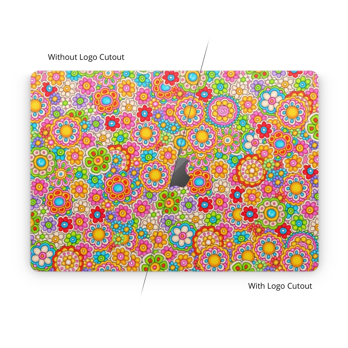 iStyles Apple MacBook Skin design of Pattern, Design, Textile, Visual arts, with pink, red, orange, yellow, green, blue, purple colors, and tagged with flowers, patterns.