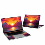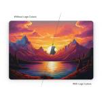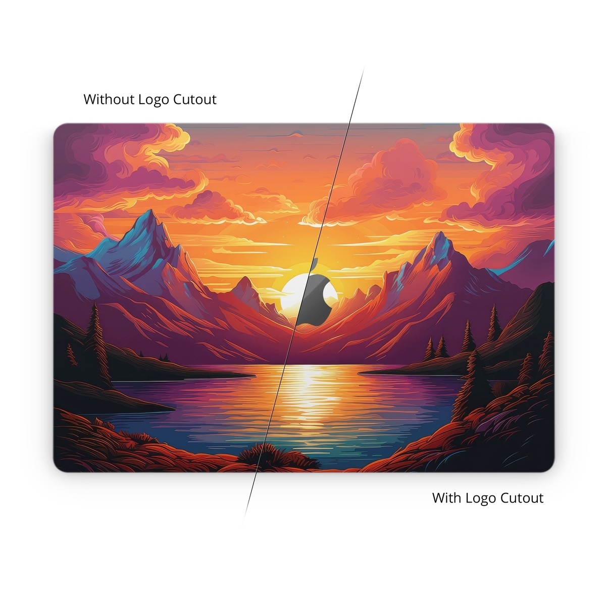 iStyles Apple MacBook Skin design of Water, Cloud, Sky, Ecoregion, Afterglow, Light, World, Nature, Natural landscape, Mountain, with red, orange, yellow, blue, purple colors, and tagged with nature, mountain, landscape, clouds, sun, sunset, reflection, lake, sea.