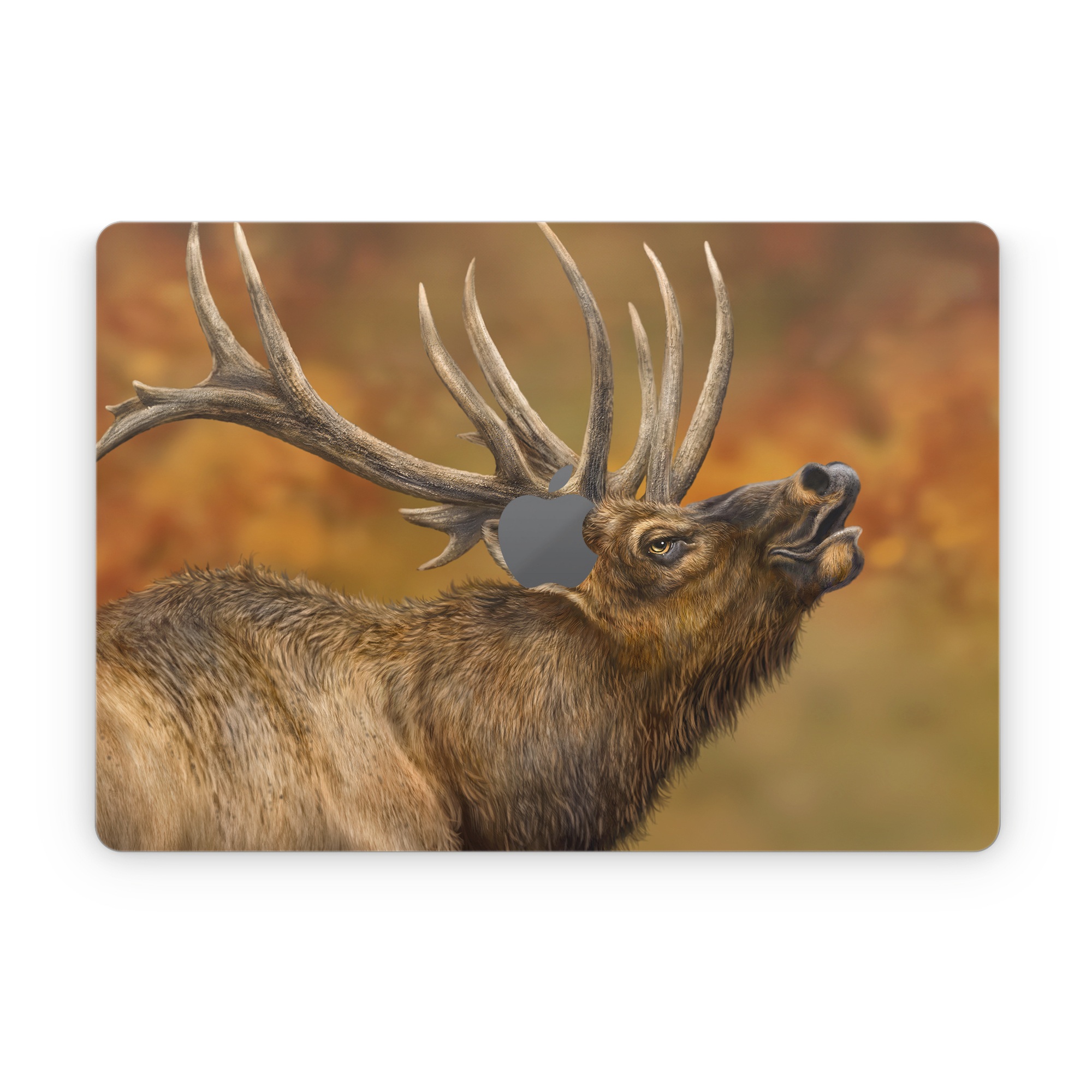 iStyles Apple MacBook Skin design of Head, Deer, Natural material, Barren ground Caribou, Fawn, Terrestrial animal, Horn, Elk, Snout, Reindeer, with brown, black, orange, yellow, gray colors, and tagged with animals, fineart, stag, deer, smiling.