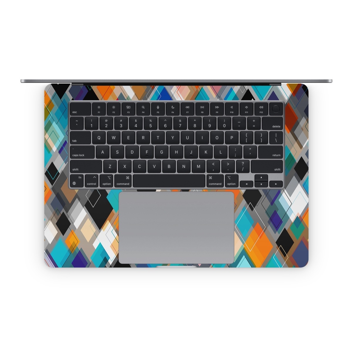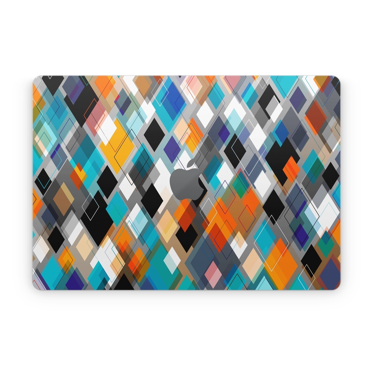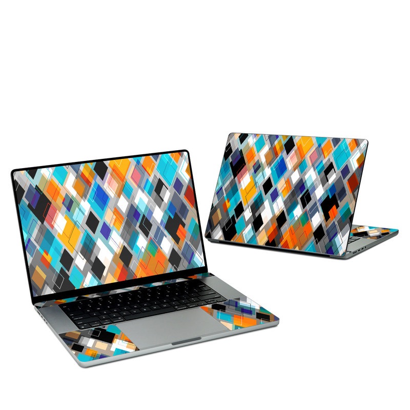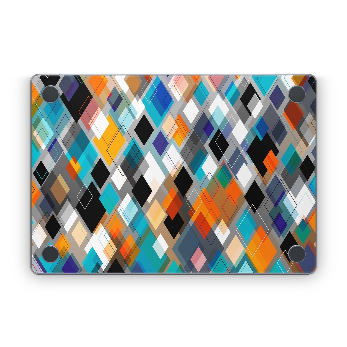 iStyles Apple MacBook Skin design of Pattern, Line, Design, Colorfulness, Plaid, Tints and shades, Textile, Symmetry, Square, with black, blue, red, orange, white colors, and tagged with patterns.