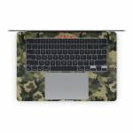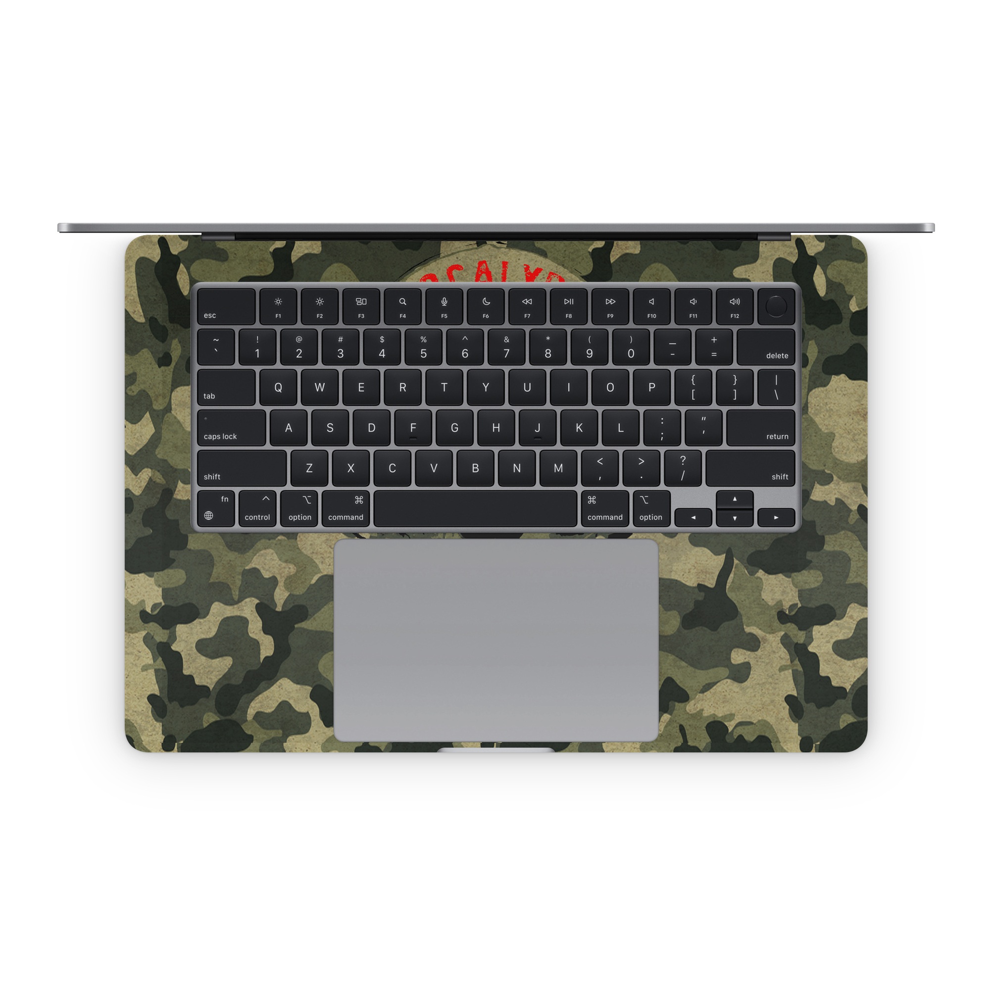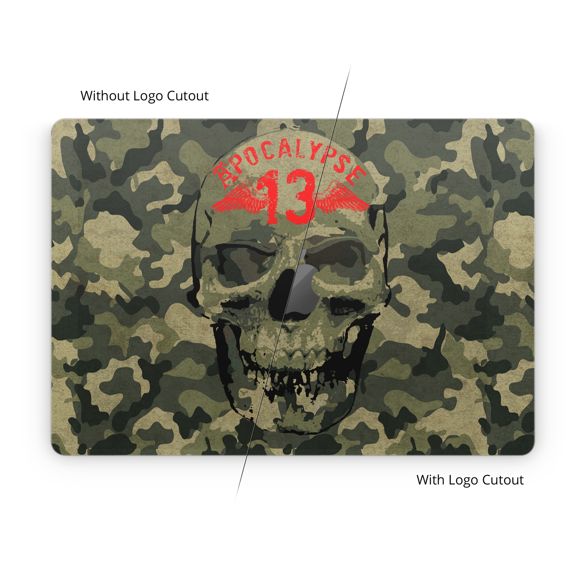 iStyles Apple MacBook Skin design of Bone, Jaw, Art, Font, Skull, Snout, Visual arts, Pattern, Graphics, Graphic design, with black, green, red colors, and tagged with skulls, signs, military, patterns, fantasy, apocalypse, thirteen, military, camo.