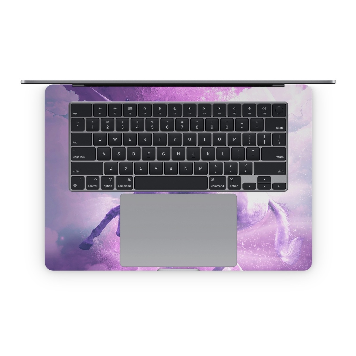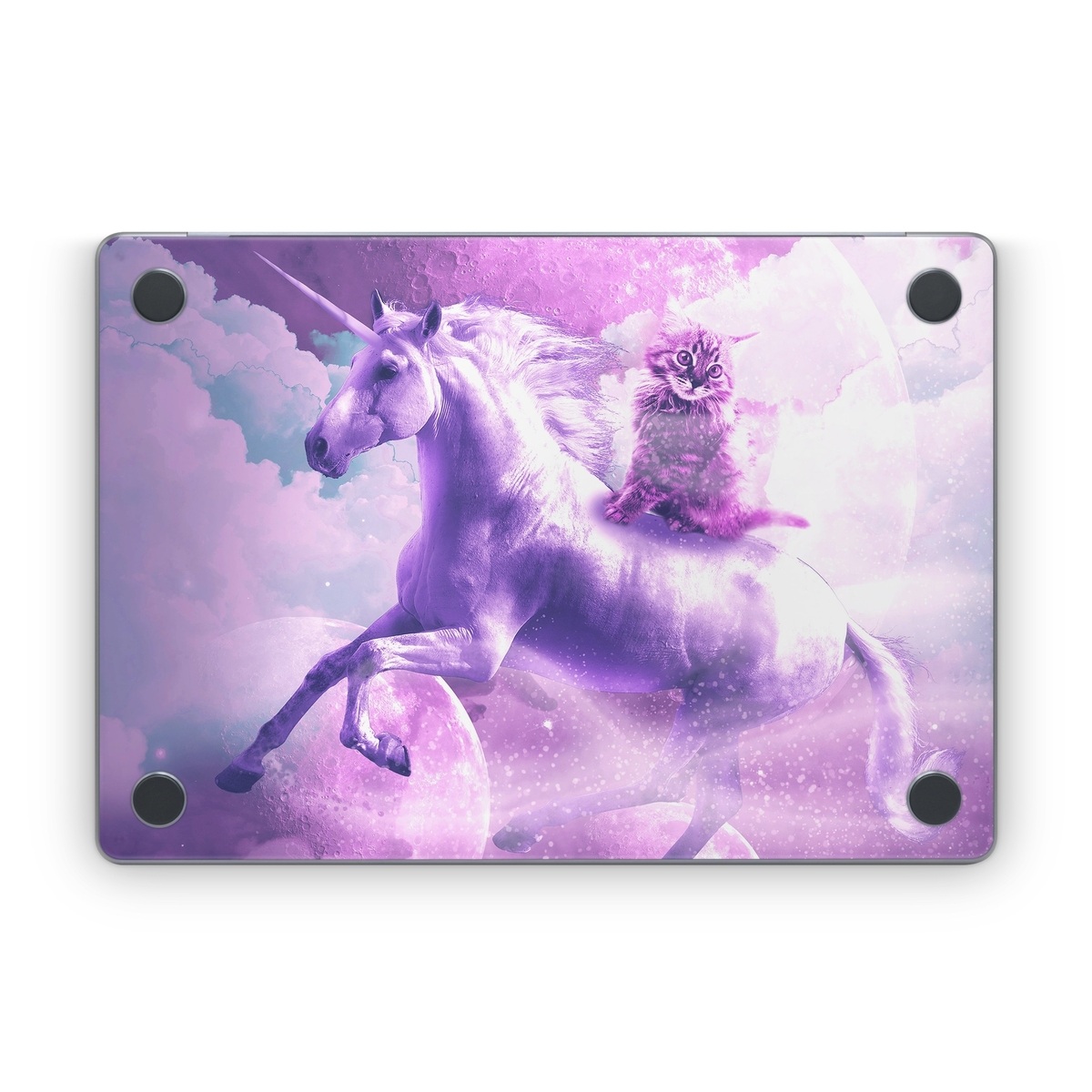 iStyles Apple MacBook Skin design of Unicorn, Purple, Fictional character, Mythical creature, Violet, Cg artwork, Illustration, Mythology, with white, purple, blue, gray, black colors, and tagged with animals, fantasy, space, animal, animals, cat, fantasy, galaxy, horse, kitten, space, unicorn, universe.