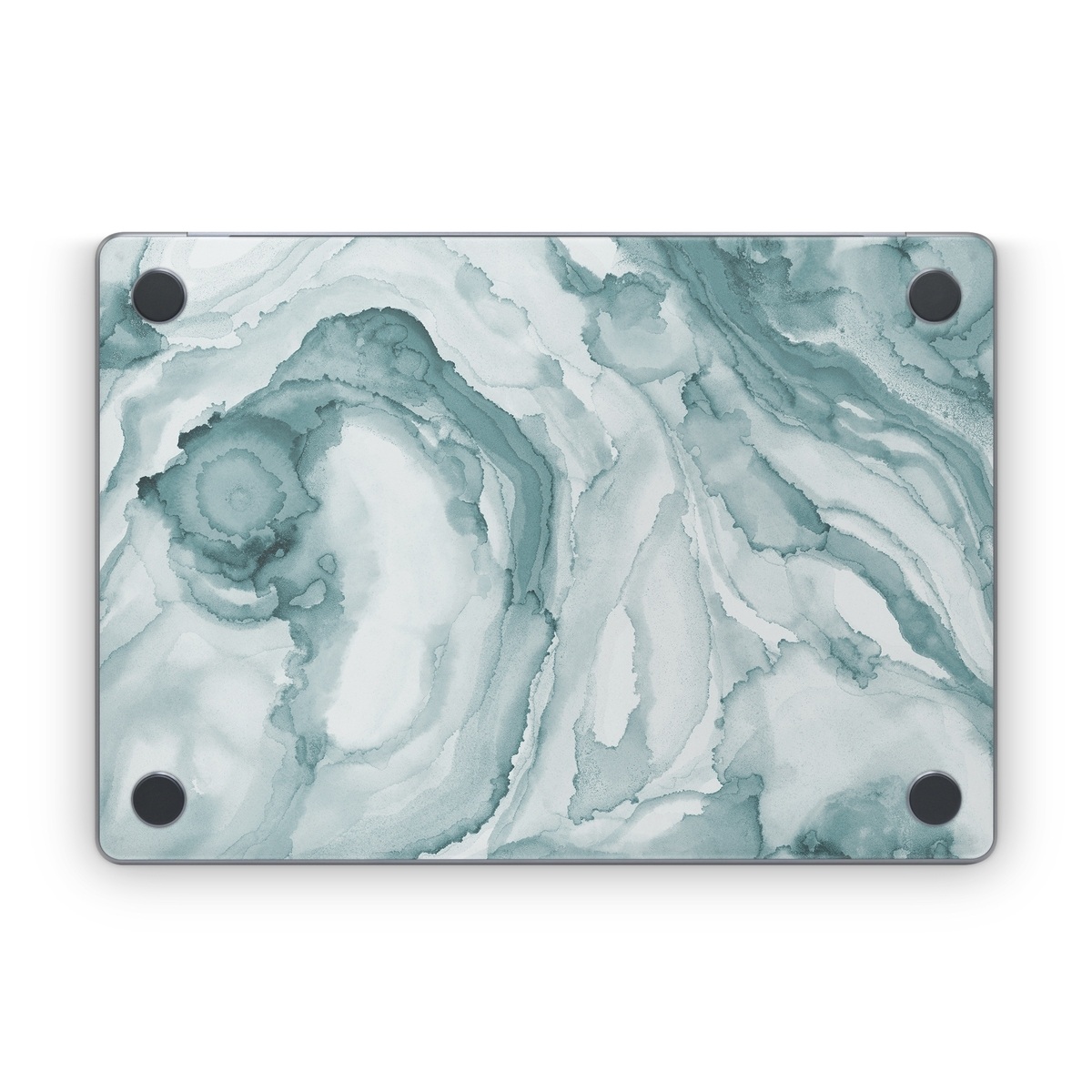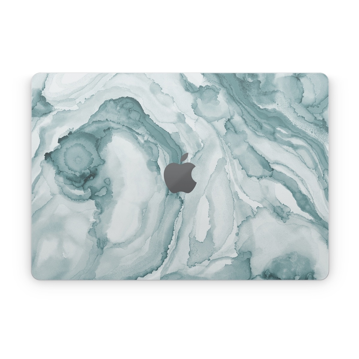 iStyles Apple MacBook Skin design of Liquid, Fluid, Snow, Polar ice cap, Ice cap, Aqua, Melting, Glacial landform, Arctic ocean, Pattern, with blue, gray, white colors, and tagged with patterns, abstract, paint, painting, water, watercolor.