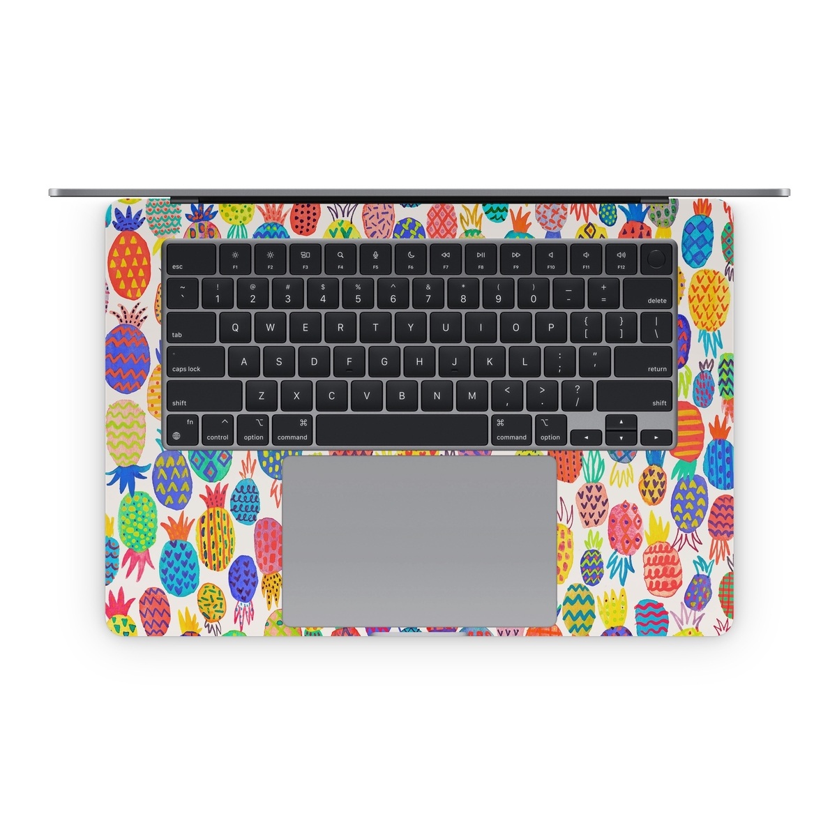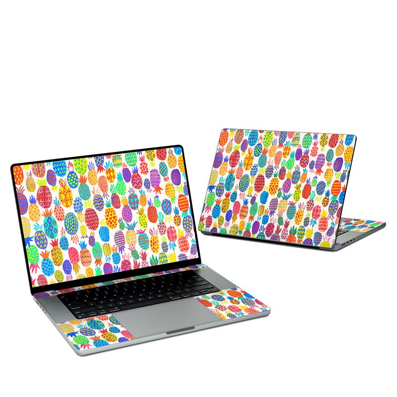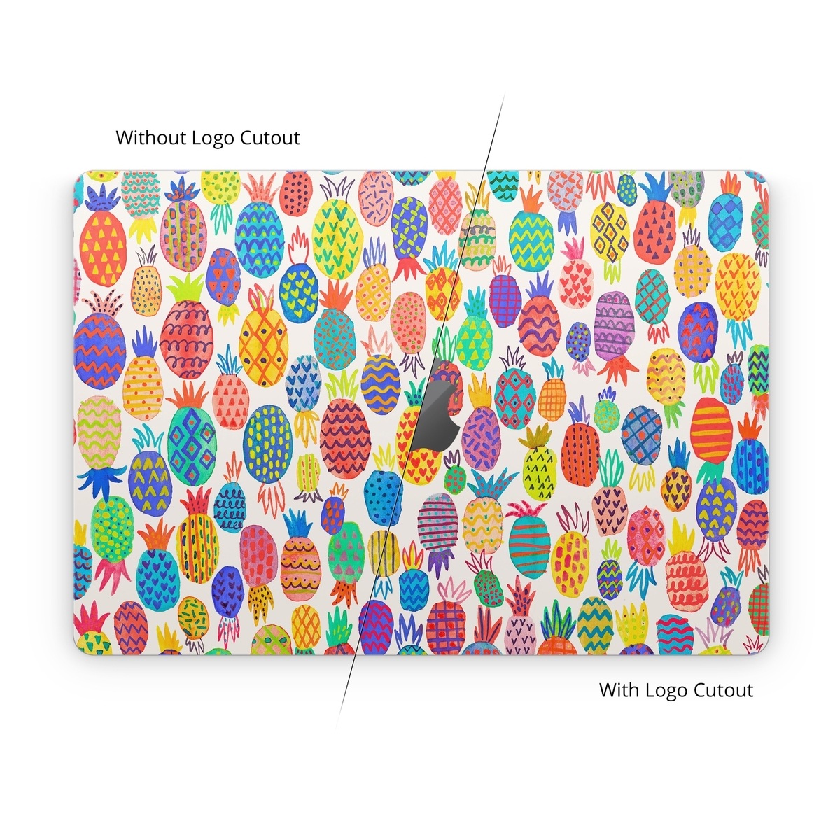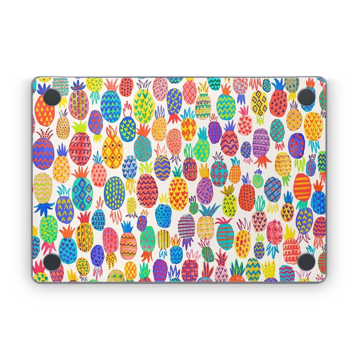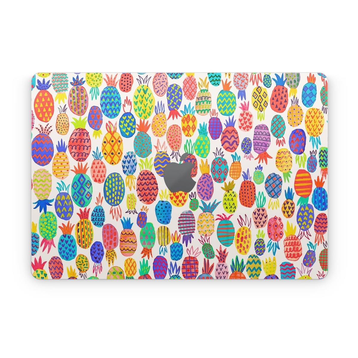 iStyles Apple MacBook Skin design of Colorfulness, Textile, Art, Line, Circle, Symmetry, Pattern, Electric blue, Visual arts, Design, with white, red, blue, green, yellow, purple, pink colors, and tagged with patterns, objects, color, colorful, food, fruit, paint, pineapple, pineapples, summer, tropic, tropical, vacation.