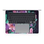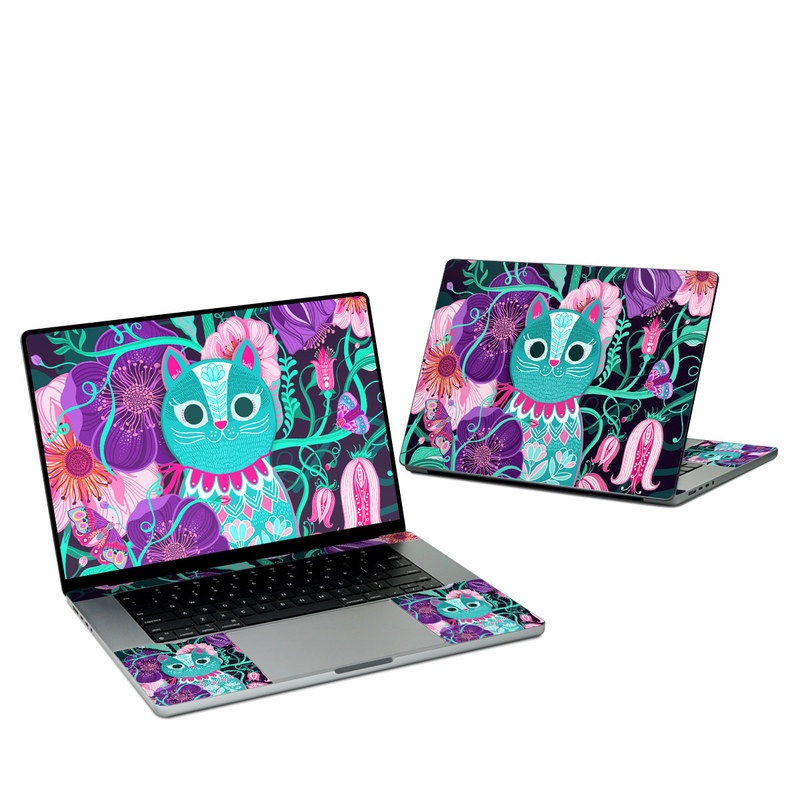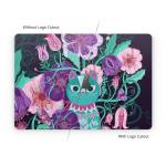 iStyles Apple MacBook Skin design of Botany, Purple, Textile, Organism, Pink, Art, Painting, Font, Creative arts, Magenta, with black, blue, pink, purple, green, red colors, and tagged with patterns, flowers, animals, cat, butterflies, butterfly, flowers, garden.