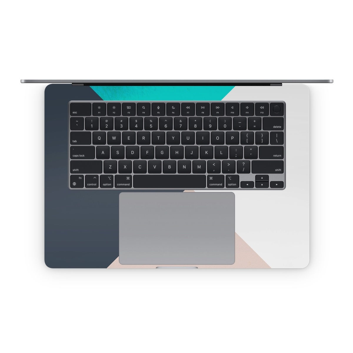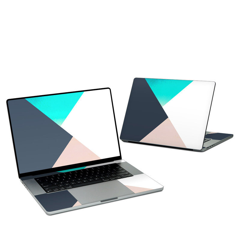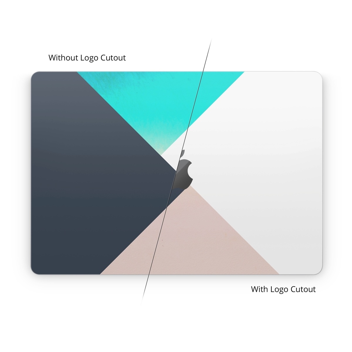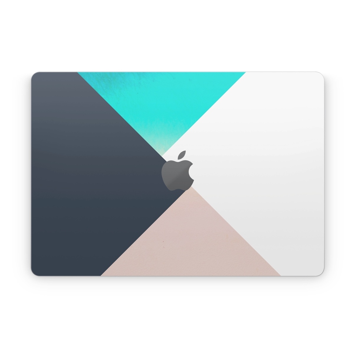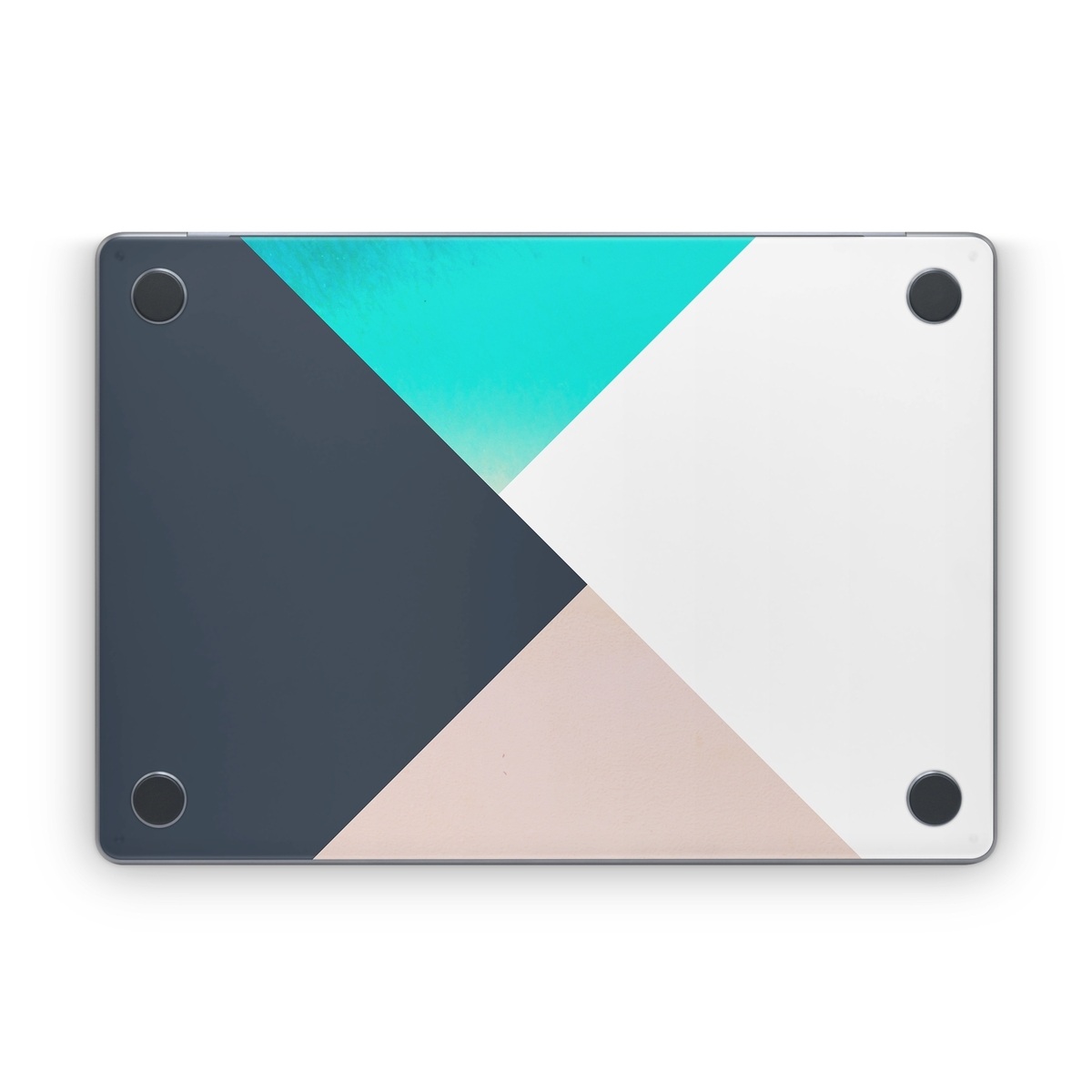 iStyles Apple MacBook Skin design of Blue, Turquoise, Aqua, Line, Triangle, Design, Material property, Graphic design, Pattern, Architecture, with black, white, brown, blue colors, and tagged with patterns, block, blocking, color, colorblock, geometric, shape, simple.