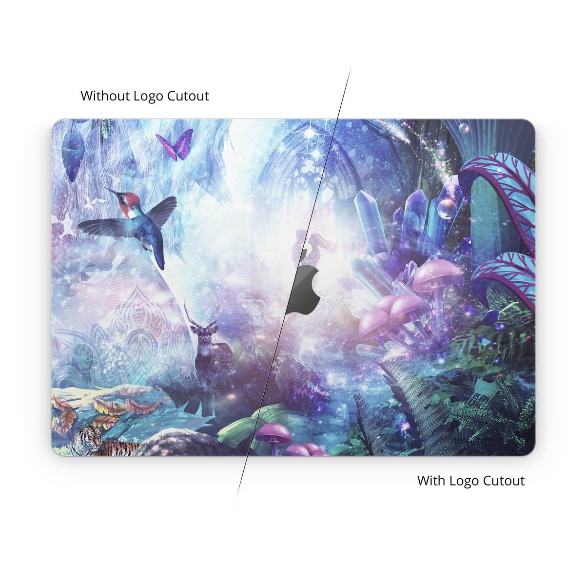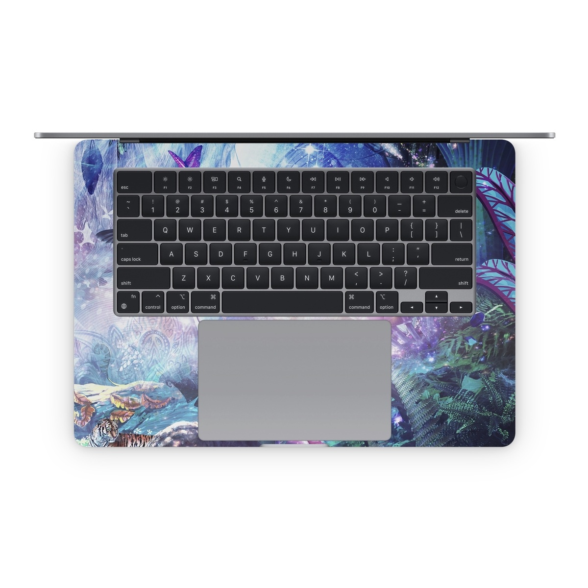 iStyles Apple MacBook Skin design of Man, Woman, Fictional Character, Mythology, Bird, Wing, Mythical Creature, Deer, Tiger, Mushrooms, Butterfly, with white, blue, green, red, yellow, black, purple, gray colors, and tagged with space, fantasy, animals, nature, urban, people, objects, flowers, dance, dancing, dream, dreaming, fantasy, forest, love, nature, woods.