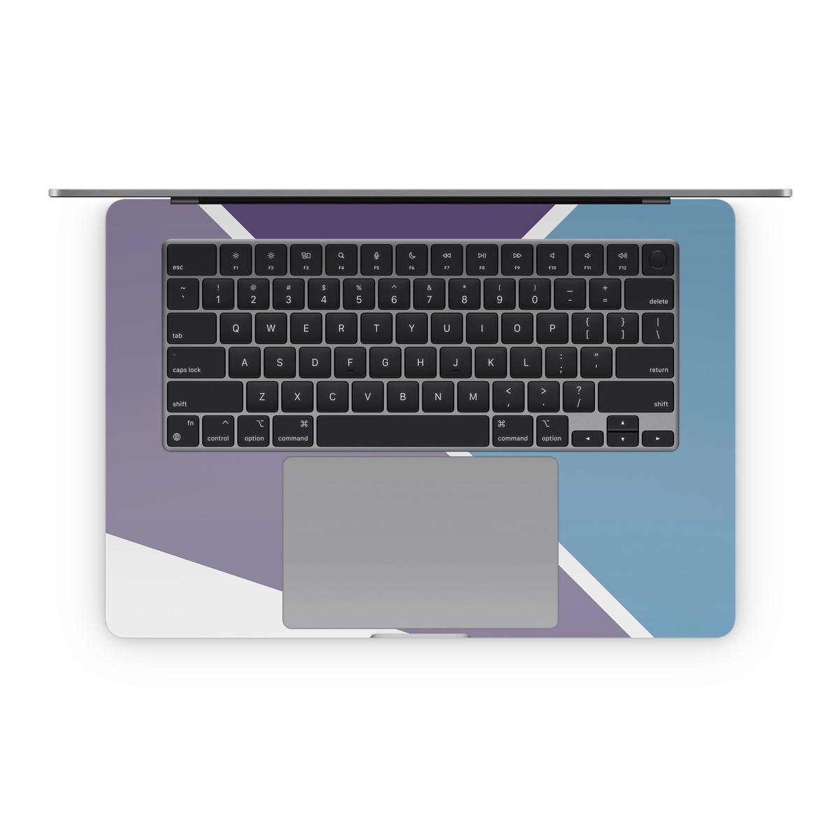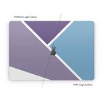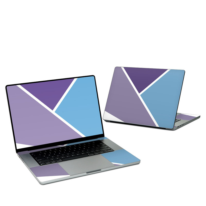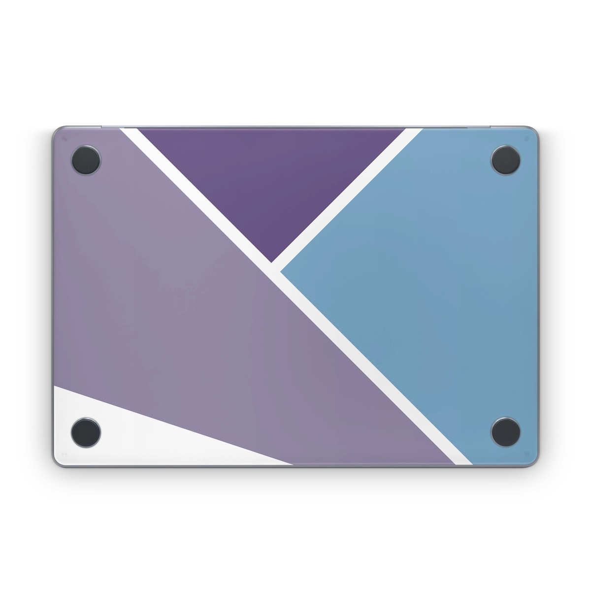 iStyles Apple MacBook Skin design of Violet, Purple, Turquoise, Line, Pattern, Design, Graphic design, Font, Triangle, Magenta, with white, blue, purple colors, and tagged with patterns, block, blocking, color, colorblock, geometric, shape, simple.