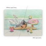 iStyles Apple MacBook Skin design of Watercolor paint, Illustration, Cartoon, Art, Painting, Drawing, Fictional character, with blue, pink, white, black, brown, red, green, yellow colors, and tagged with people, fineart, objects, animals, urban, drawn, face, faces, fashion, handdrawn, painting, portrait, woman, women, donut, present, cocktail, drink, swan, swimming, ball, cupcake.