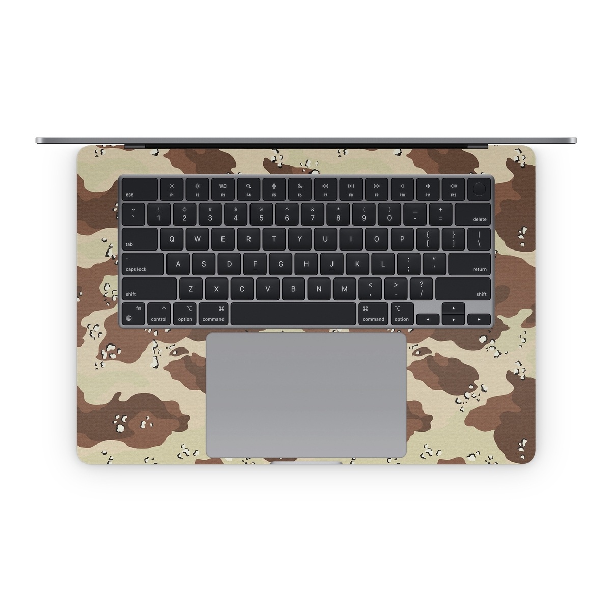 iStyles Apple MacBook Skin design of Military camouflage, Brown, Pattern, Design, Camouflage, Textile, Beige, Illustration, Uniform, Metal, with gray, red, black, green colors, and tagged with military, patterns.