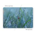 iStyles Apple MacBook Skin design of Moisture, Dew, Water, Green, Grass, Plant, Drop, Grass family, Macro photography, Close-up, with blue, black, green, gray colors, and tagged with nature, patterns.