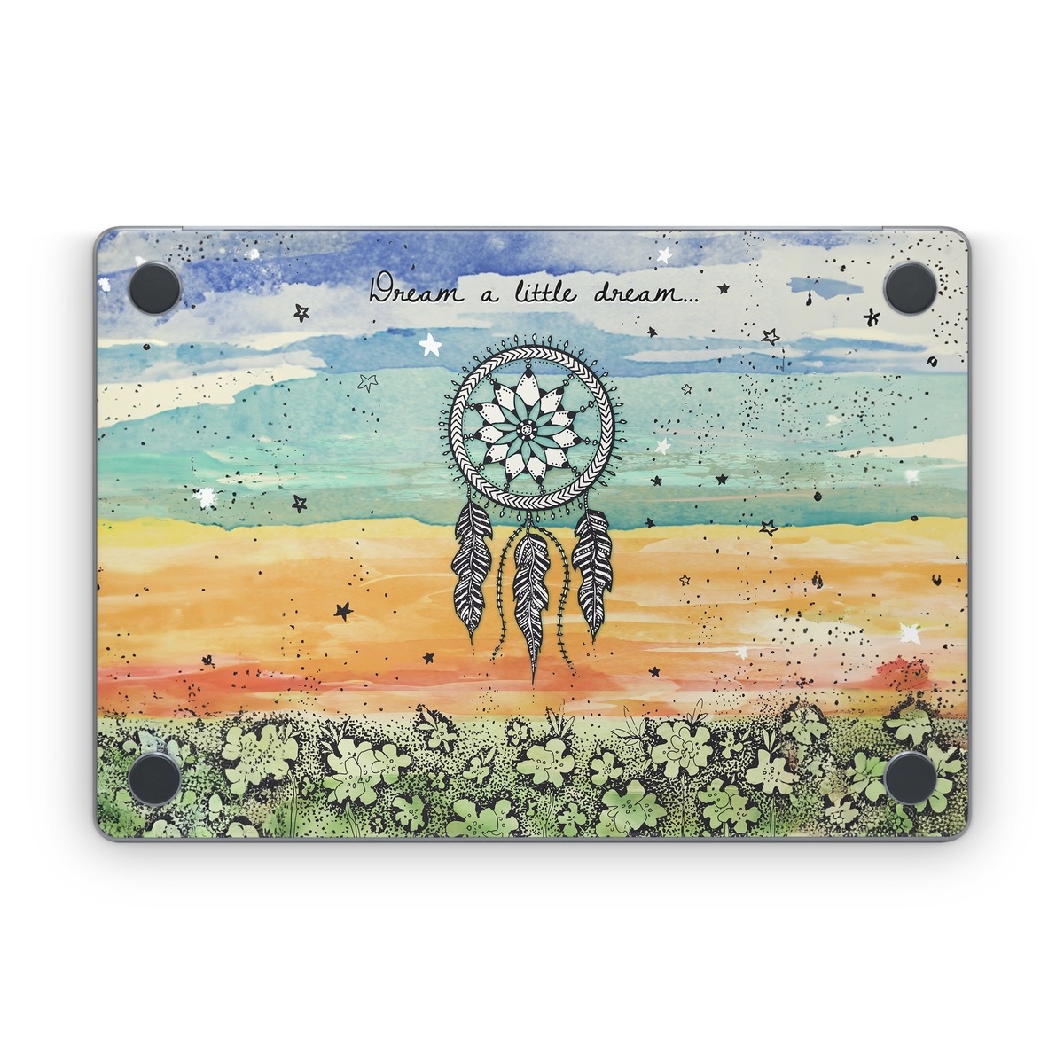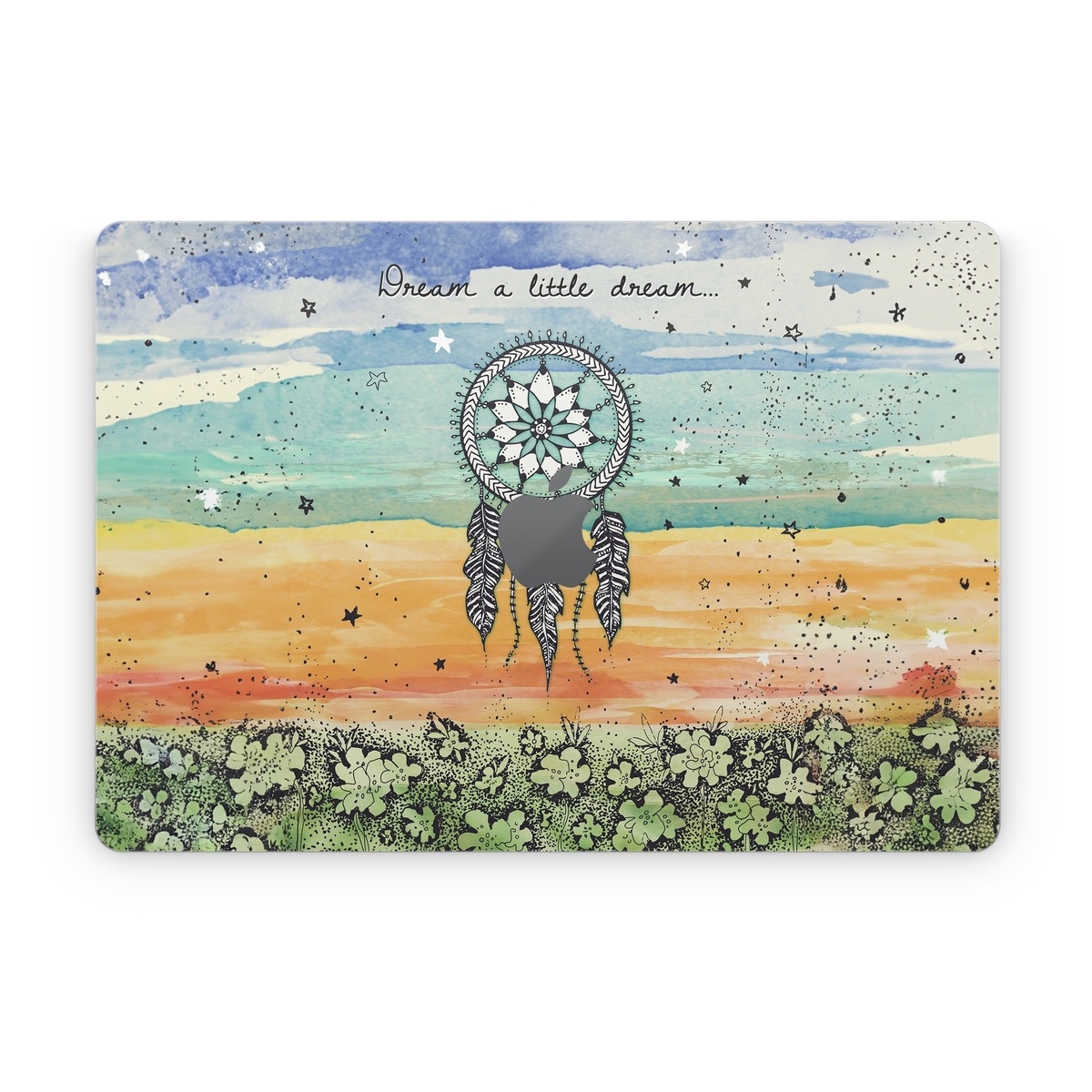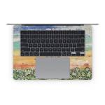 iStyles Apple MacBook Skin design of Text, Sky, Font, Illustration, Plant, Art, Wildflower, sunflower, Graphics, with blue, green, yellow, orange, black colors, and tagged with signs, flowers, objects.