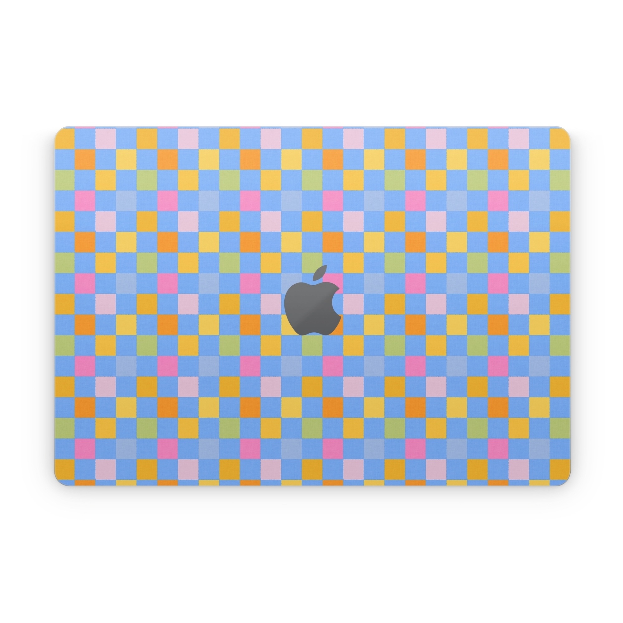 iStyles Apple MacBook Skin design of Rectangle, Azure, Textile, Orange, Aqua, Font, Symmetry, Magenta, Tints and shades, Parallel, with blue, yellow, orange, green, pink colors, and tagged with patterns, checkered, squares, colorful.