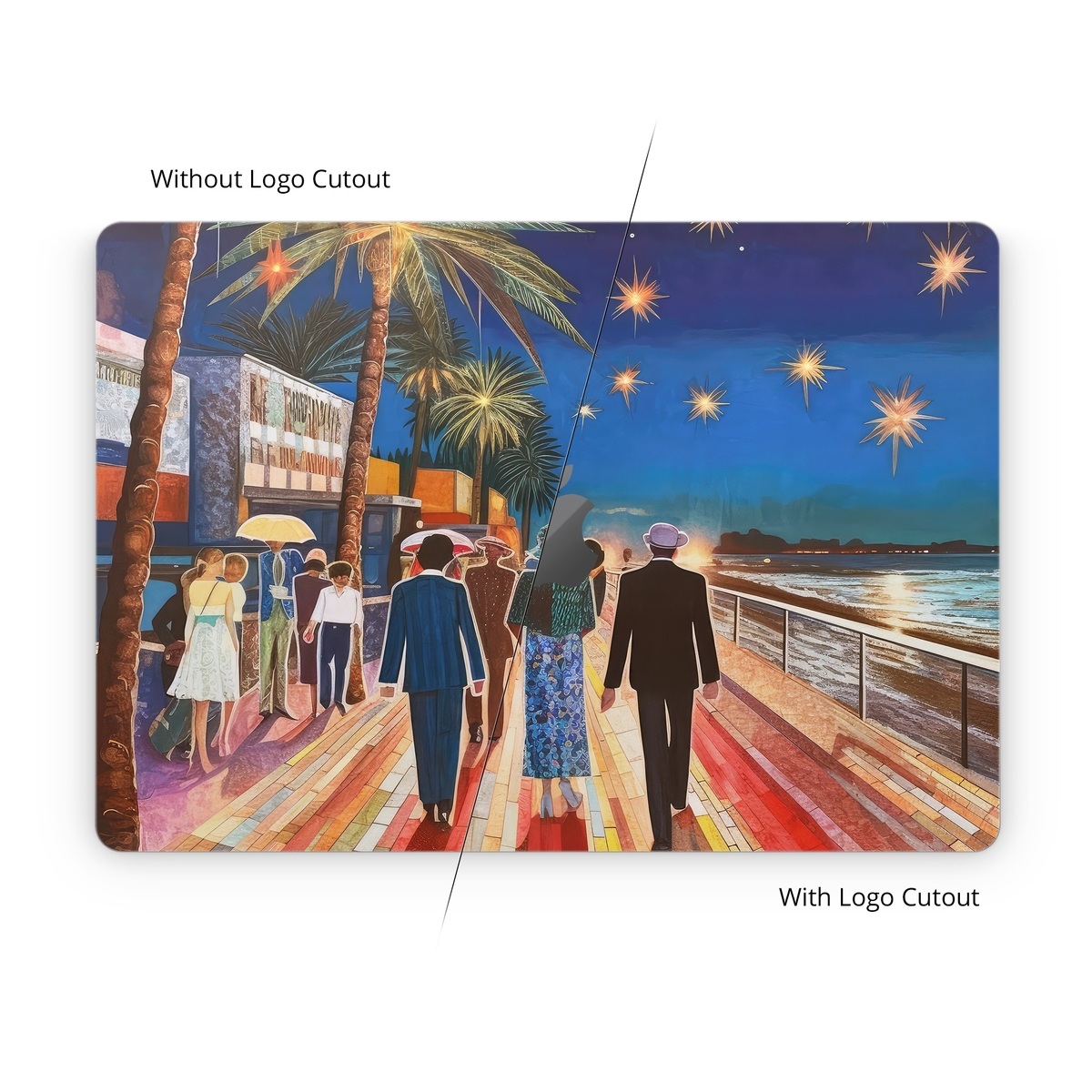iStyles Apple MacBook Skin design of Photograph, Sky, World, Light, Tree, Leisure, Line, Fun, Travel, People, with blue, black, yellow, orange, red, green, brown, black colors, and tagged with fineart, urban, people, nature, sidewalk, beach, palm, trees, stores, seaside, stars.