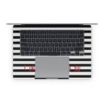 The MacBook inner Skins are precision cut to cover the area around the keyboard - the complexity and large size of this surface does make Skin alignment a little more tricky but the final effect when it's done properly is well worth the effort. What we generally do during Skin application is to first align the Skin to the major physical cutouts, and in this case, that will be the trackpad area. Peel the whole inner Skin off and start with the bottom half; hold the Skin at both ends of the wrist rest area and gently position until it aligns perfectly to the trackpad. One trick will be to keep the top half (the thin stripes that go beside the keyboard) folded back over the bottom half such that the stripes do not get stuck on your MacBook when you're positioning the bottom half. Once you've aligned the trackpad, everything else will fall in place with a little guidance.