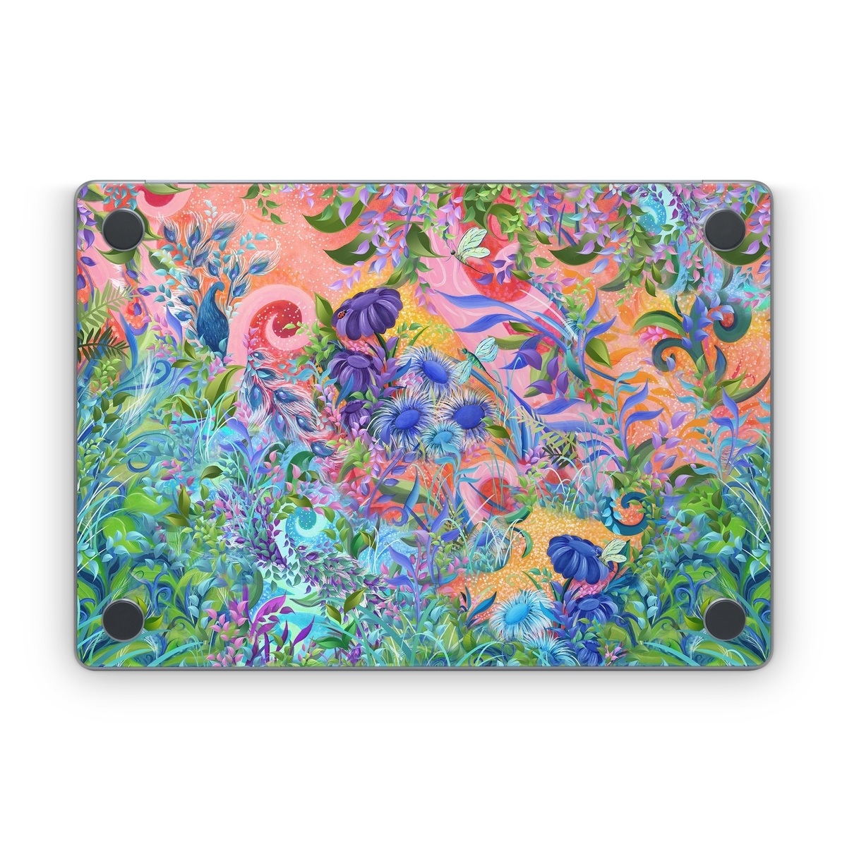 iStyles Apple MacBook Skin design of Psychedelic art, Painting, Art, Acrylic paint, Pattern, Modern art, Visual arts, Textile, Design, Organism, with gray, blue, green, pink colors, and tagged with patterns, nature, flowers.