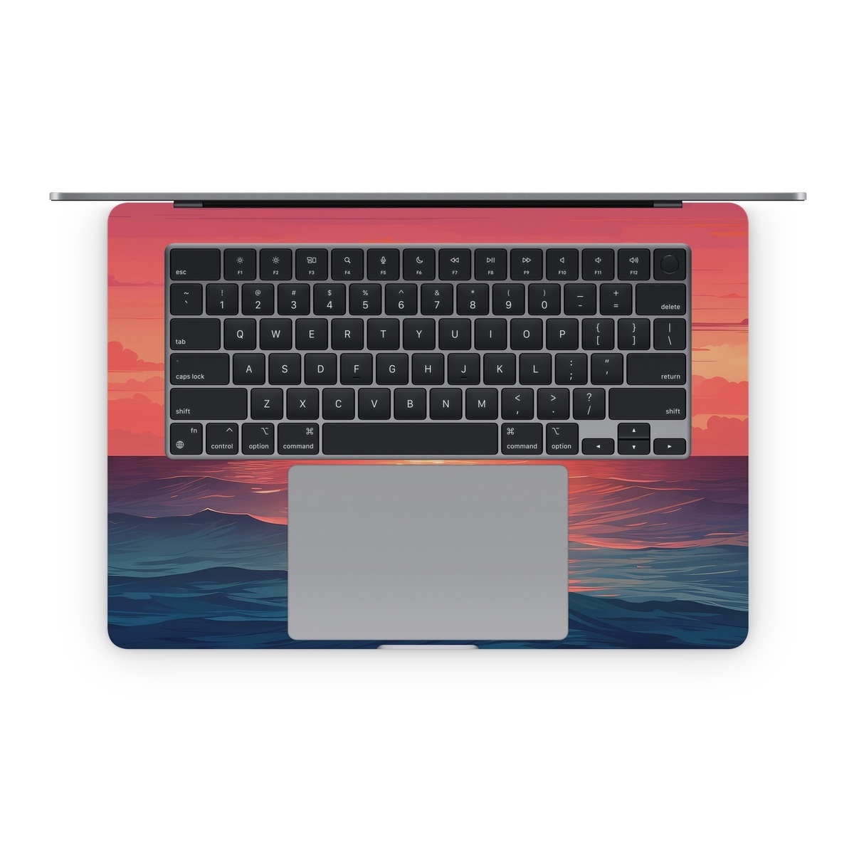 iStyles Apple MacBook Skin design of Cloud, Sky, Atmosphere, Daytime, Afterglow, Ecoregion, Nature, Dusk, Water, Orange, with blue, red, yellow, orange, pink, black, purple colors, and tagged with nature, sea, landscape, sunset, waves.