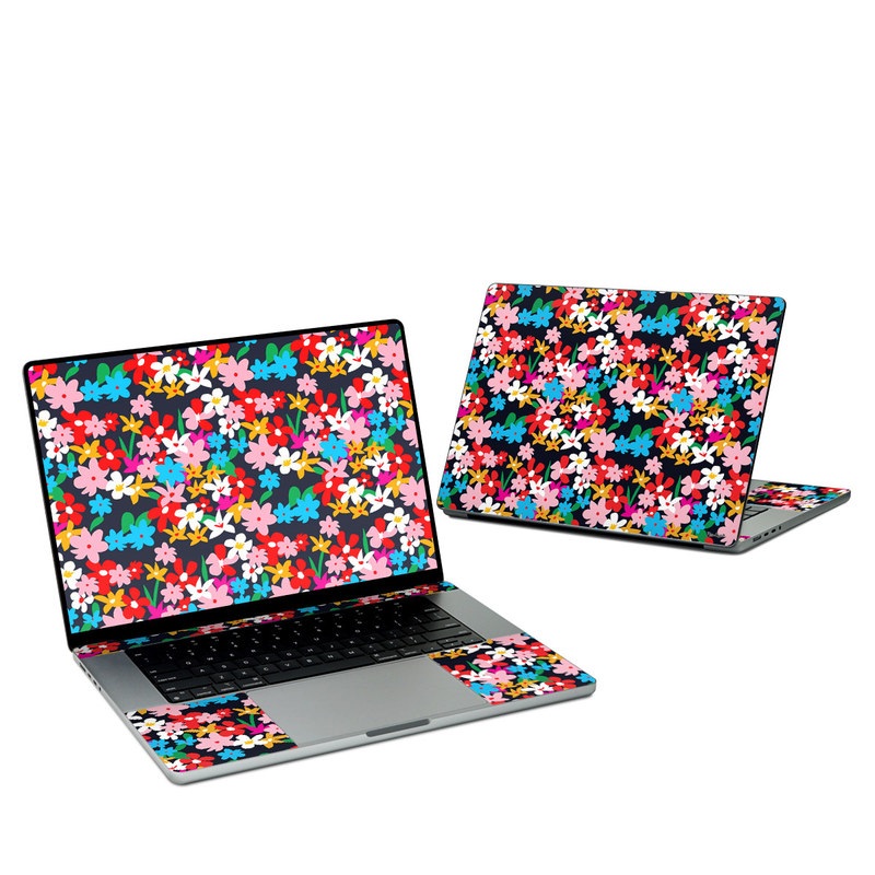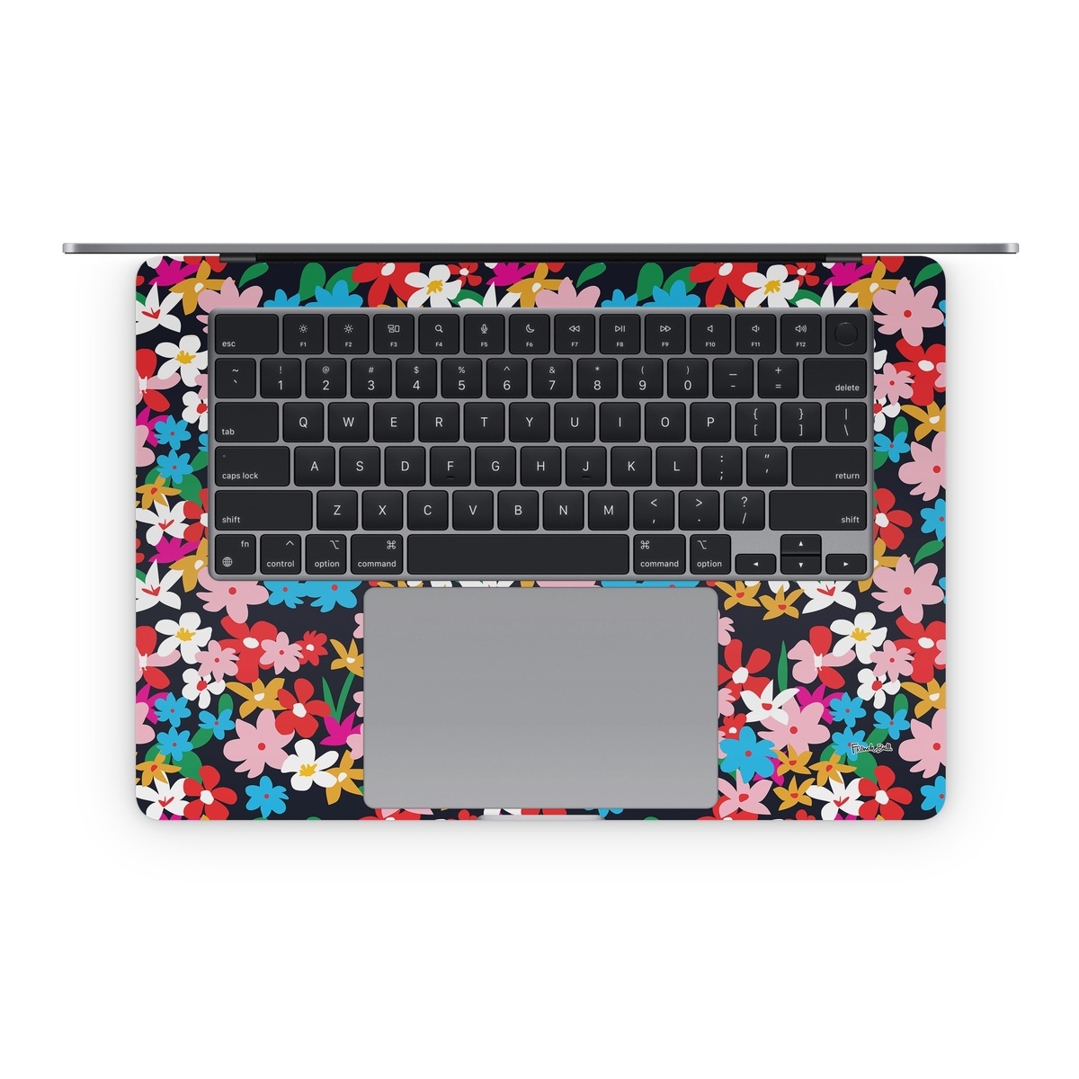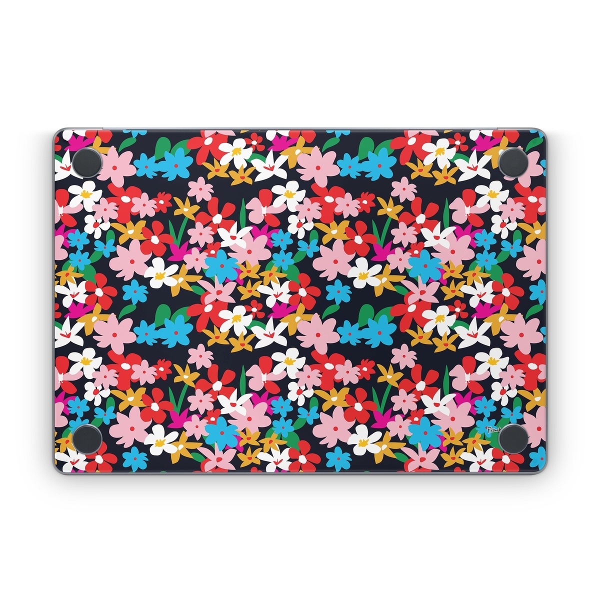 iStyles Apple MacBook Skin design of Colorfulness, Pattern, Art, Magenta, Rectangle, Event, Petal, Electric blue, Visual arts, with black, red, pink, white, blue, orange, green colors, and tagged with patterns, flowers, bright, color, colorful, colors, floral, flower, flowers, garden, gardening.