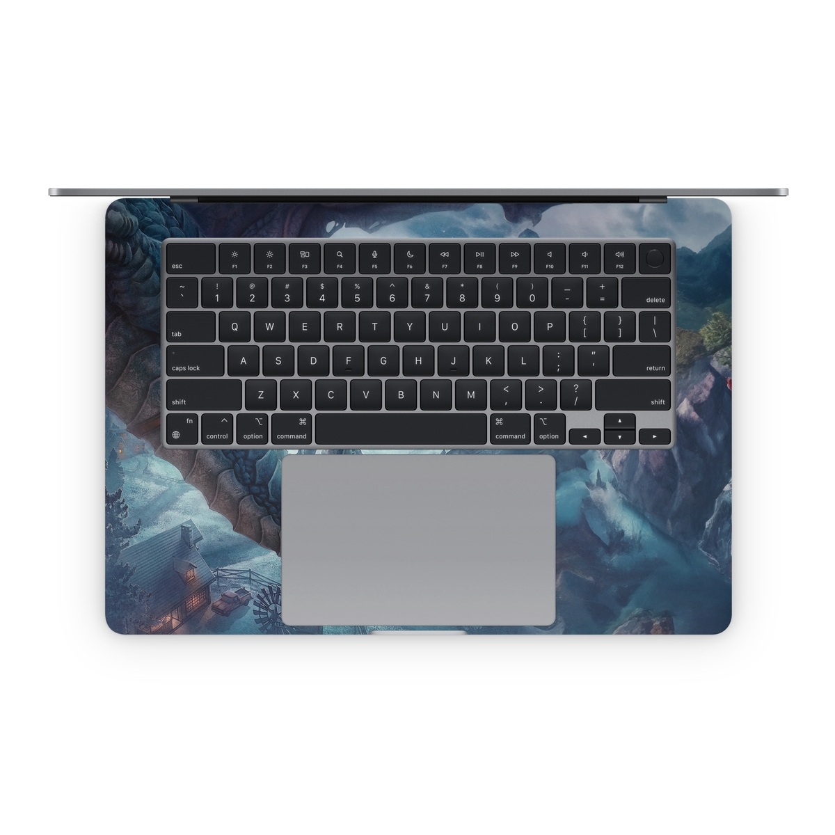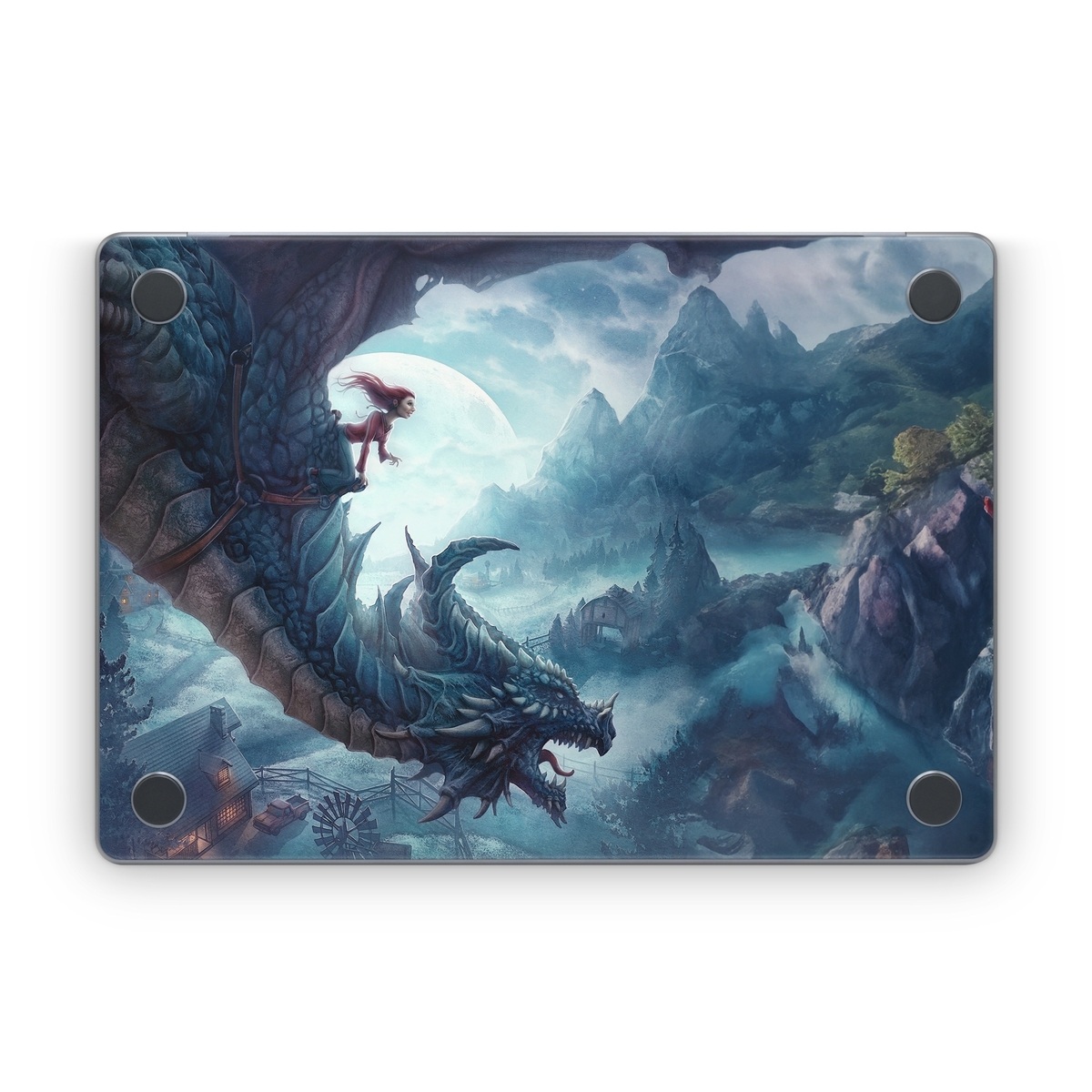 iStyles Apple MacBook Skin design of Dragon, Cg artwork, Illustration, Action-adventure game, Fictional character, Mythical creature, Mythology, Fiction, Cryptid, Extinction, with blue, white, brown, green colors, and tagged with fantasy, animals, people, nature, urban, dragon, fantasy, girl, night, woman.