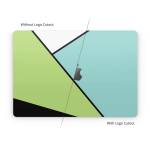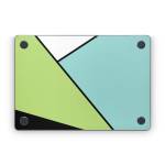 iStyles Apple MacBook Skin design of Green, Line, Blue, Triangle, Design, Parallel, Pattern, Graphic design, Slope, with white, black, green, blue colors, and tagged with patterns, block, blocking, color, colorblock, geometric, shape, simple.
