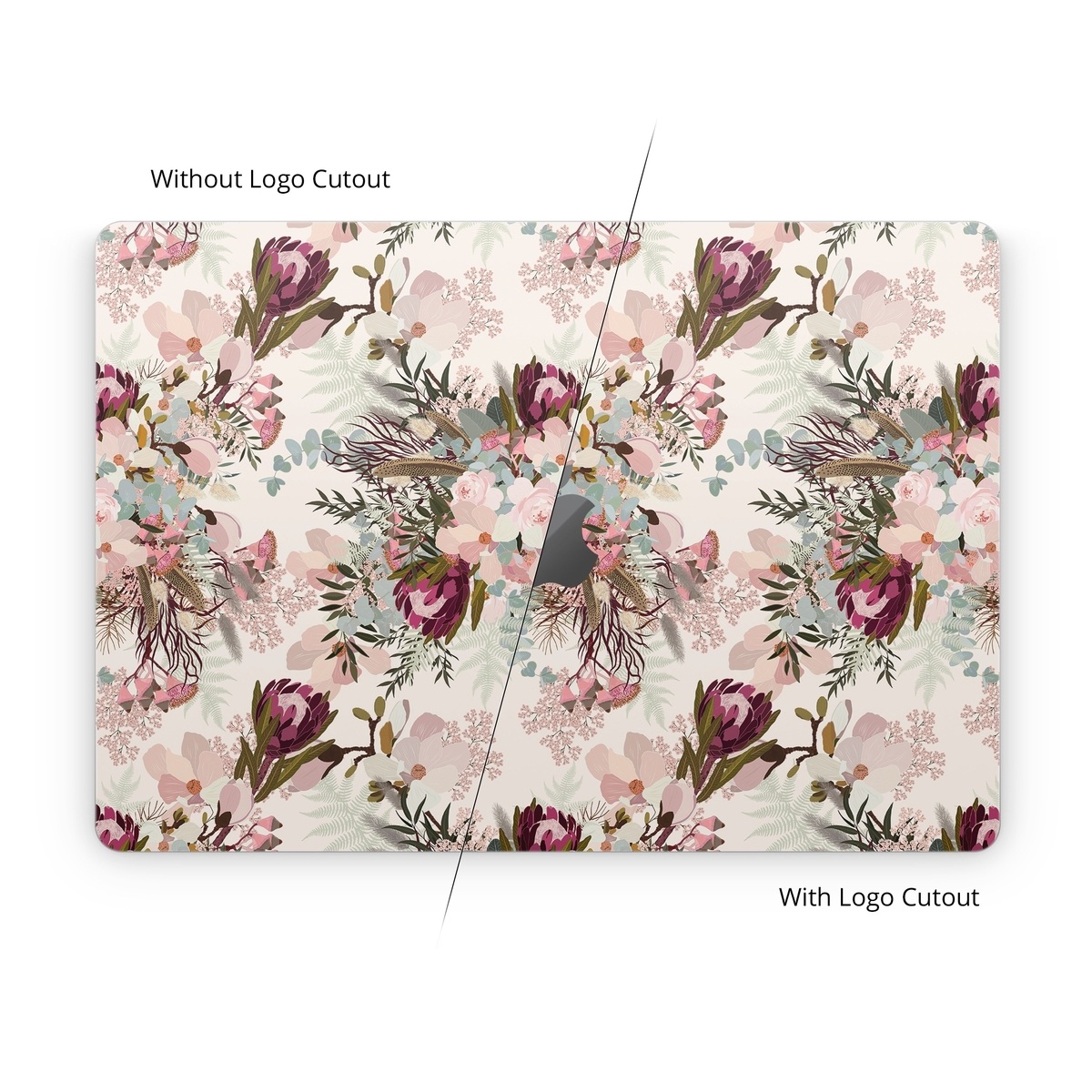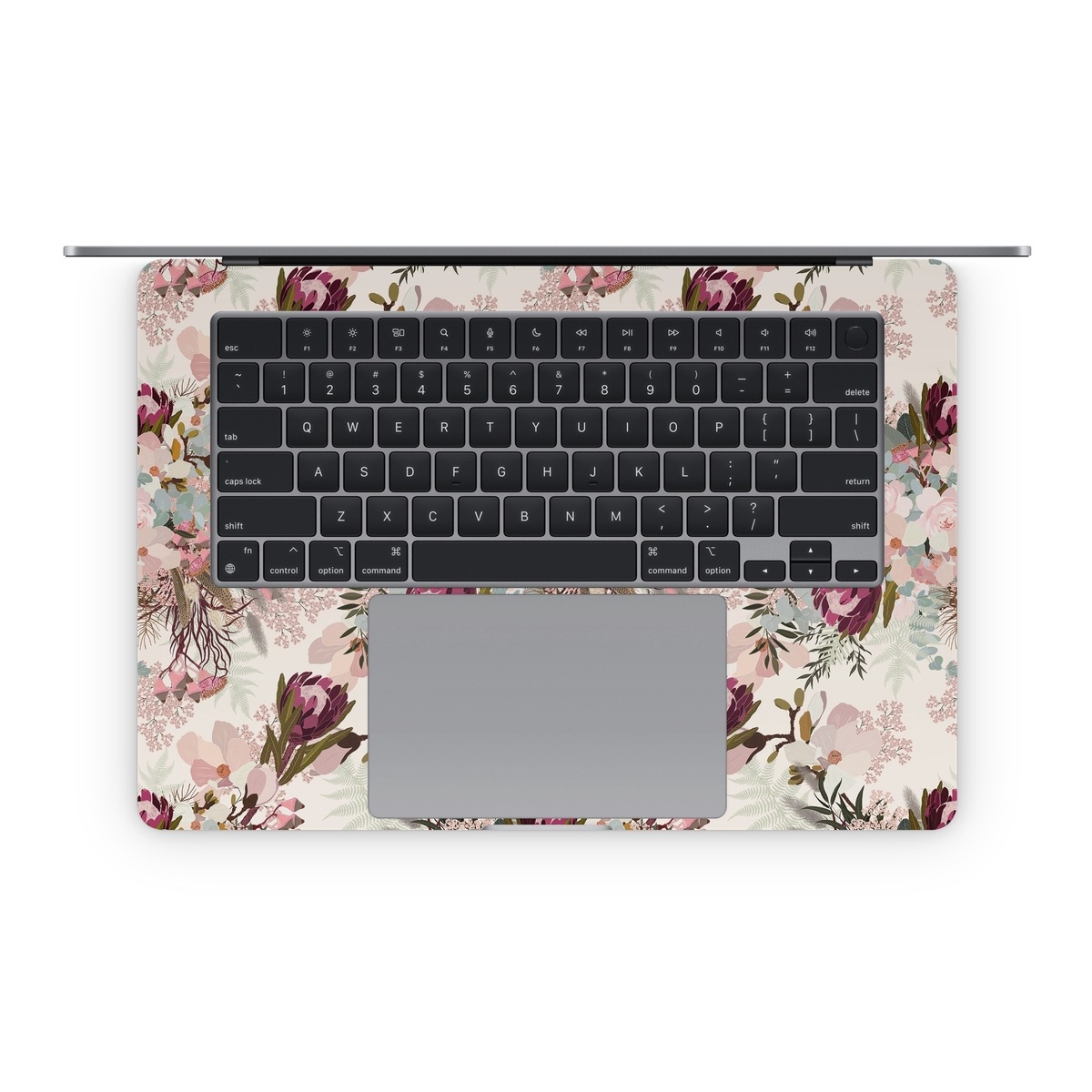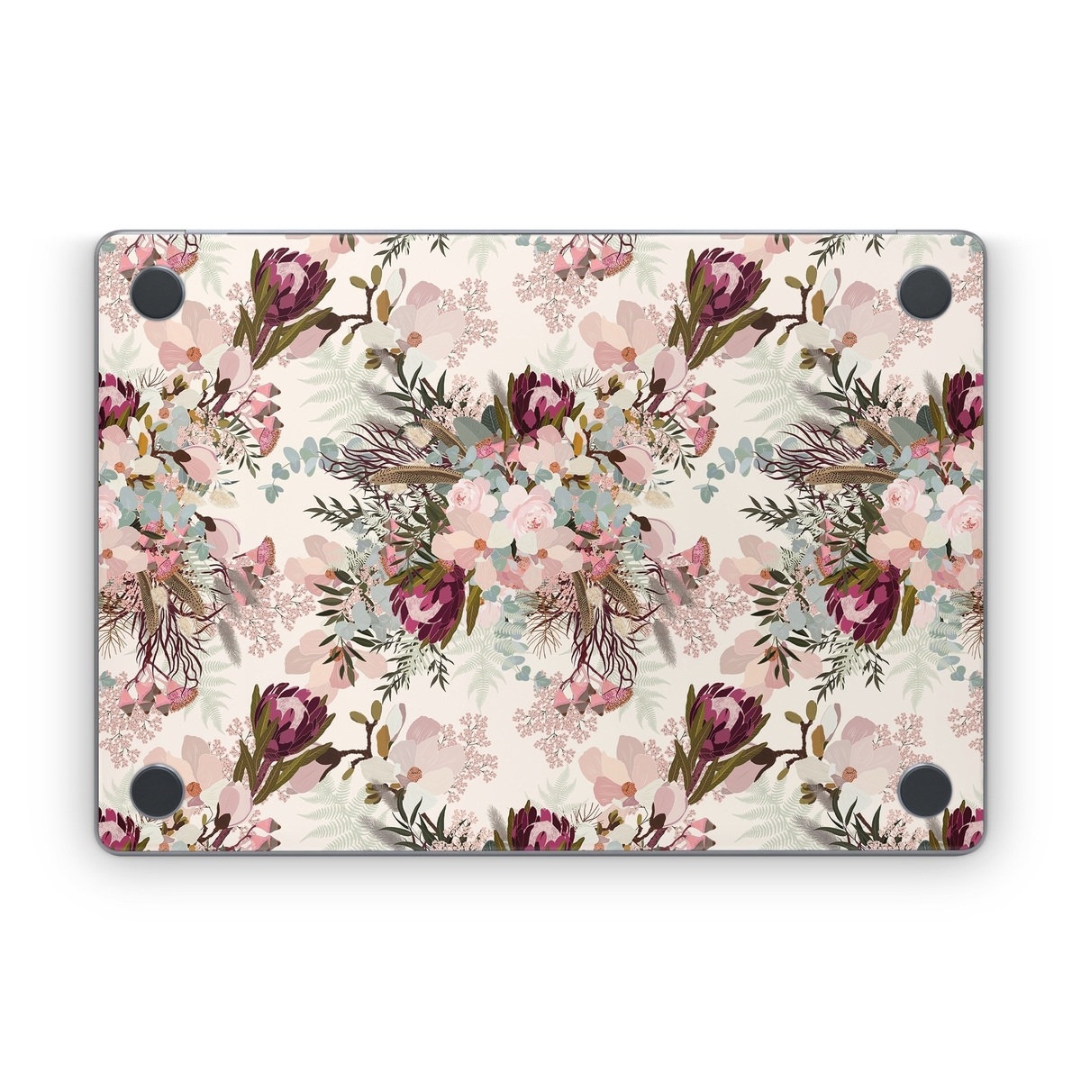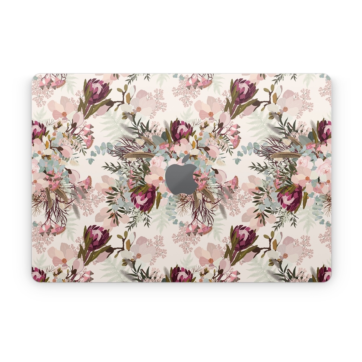 iStyles Apple MacBook Skin design of Pink, Pattern, Lilac, Flower, Plant, Petal, Floral design, Textile, Design, Blossom, with white, red, pink, blue, brown colors, and tagged with patterns, flowers, nature, bouquet, filigree, floral, flower, flowers, pastel.