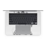 The MacBook inner Skins are precision cut to cover the area around the keyboard - the complexity and large size of this surface does make Skin alignment a little more tricky but the final effect when it's done properly is well worth the effort. What we generally do during Skin application is to first align the Skin to the major physical cutouts, and in this case, that will be the trackpad area. Peel the whole inner Skin off and start with the bottom half; hold the Skin at both ends of the wrist rest area and gently position until it aligns perfectly to the trackpad. One trick will be to keep the top half (the thin stripes that go beside the keyboard) folded back over the bottom half such that the stripes do not get stuck on your MacBook when you're positioning the bottom half. Once you've aligned the trackpad, everything else will fall in place with a little guidance.