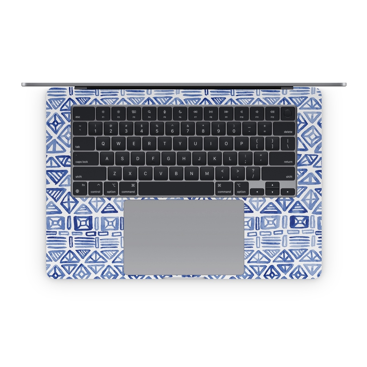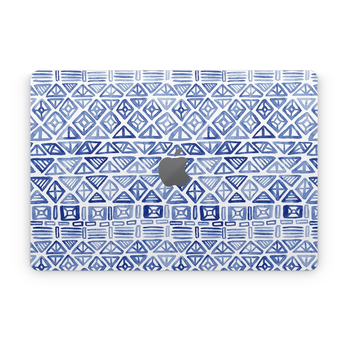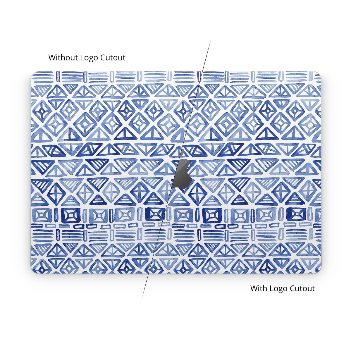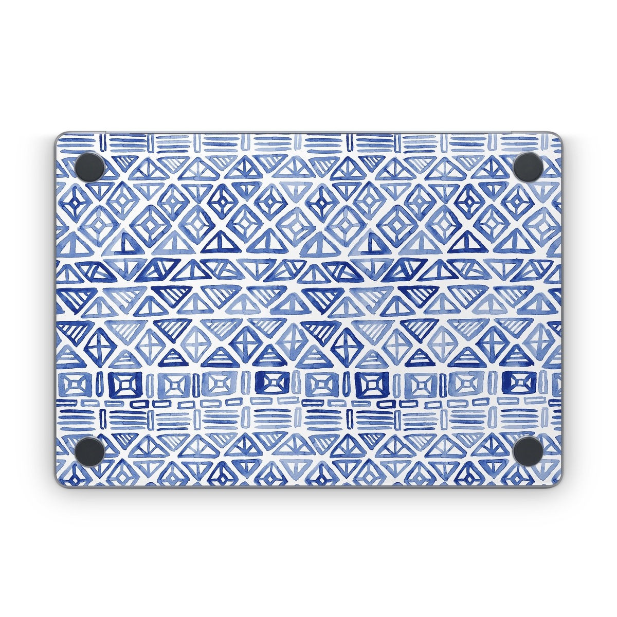 iStyles Apple MacBook Skin design of Pattern, Line, Design, Symmetry, Visual arts, Parallel, with white, blue colors, and tagged with patterns, blue, geometric, magpiemoon, pattern, tribal, watercolor, white.