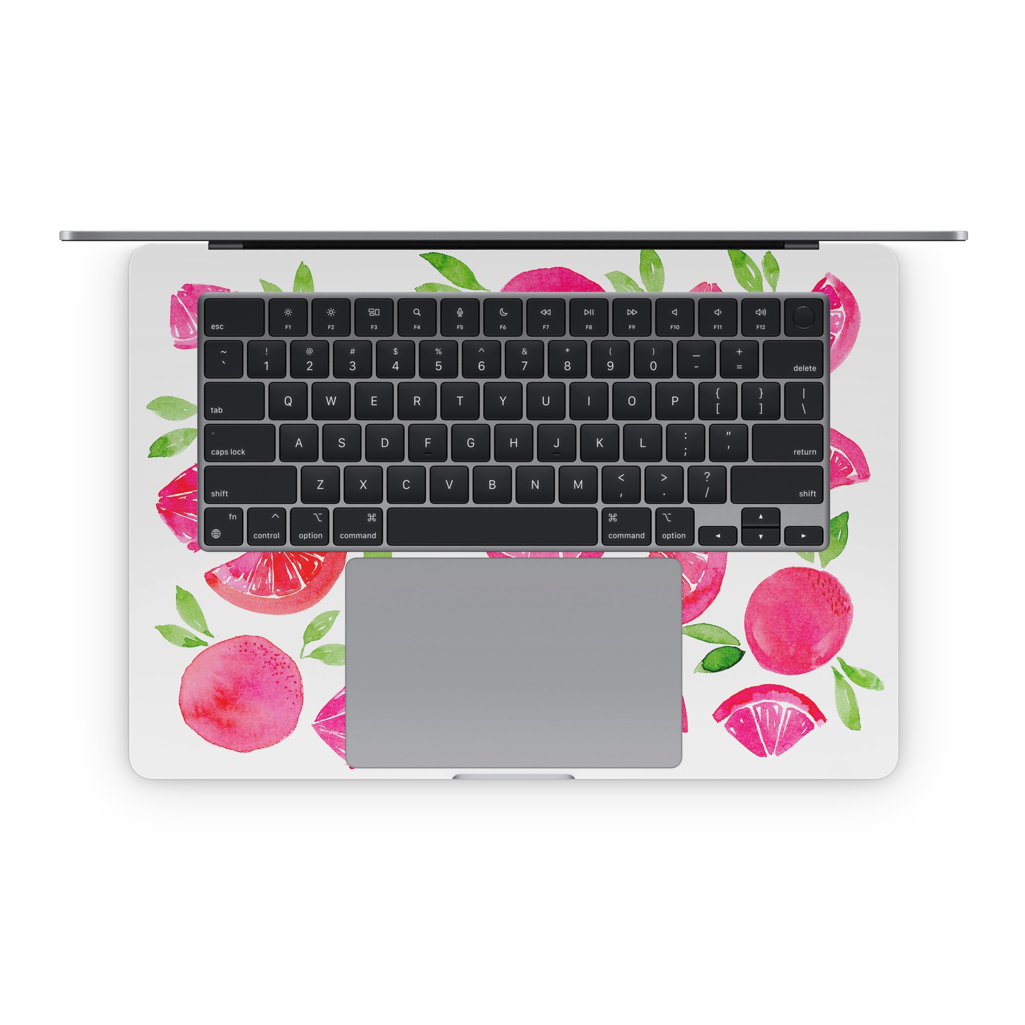 iStyles Apple MacBook Skin design of Food, Plant, Fruit, Botany, Natural foods, Seedless fruit, Ingredient, Red, Font, Citrus, with pink, green, red, white colors, and tagged with patterns, objects, fruit, citrus.