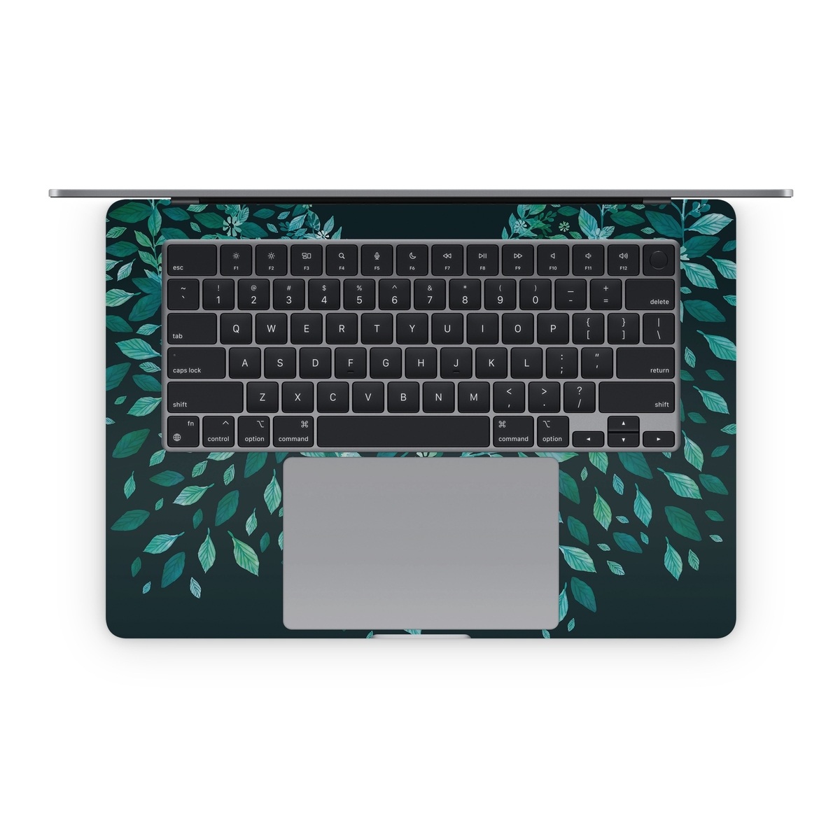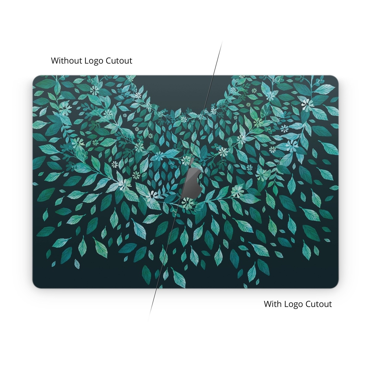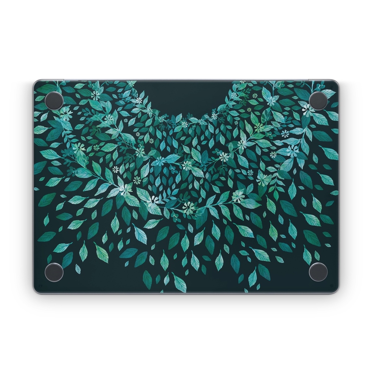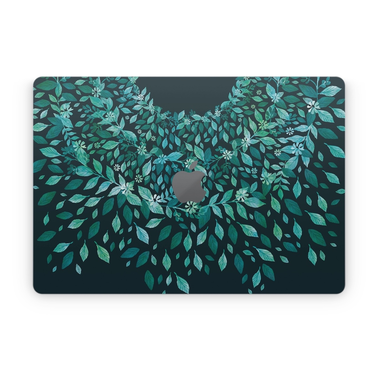 iStyles Apple MacBook Skin design of Green, Aqua, Organism, Turquoise, Natural environment, Teal, Marine biology, Water, Leaf, Plant, with black, green, white colors, and tagged with patterns, nature, flowers, blue, flowers, green, leaves, nature, wreath.