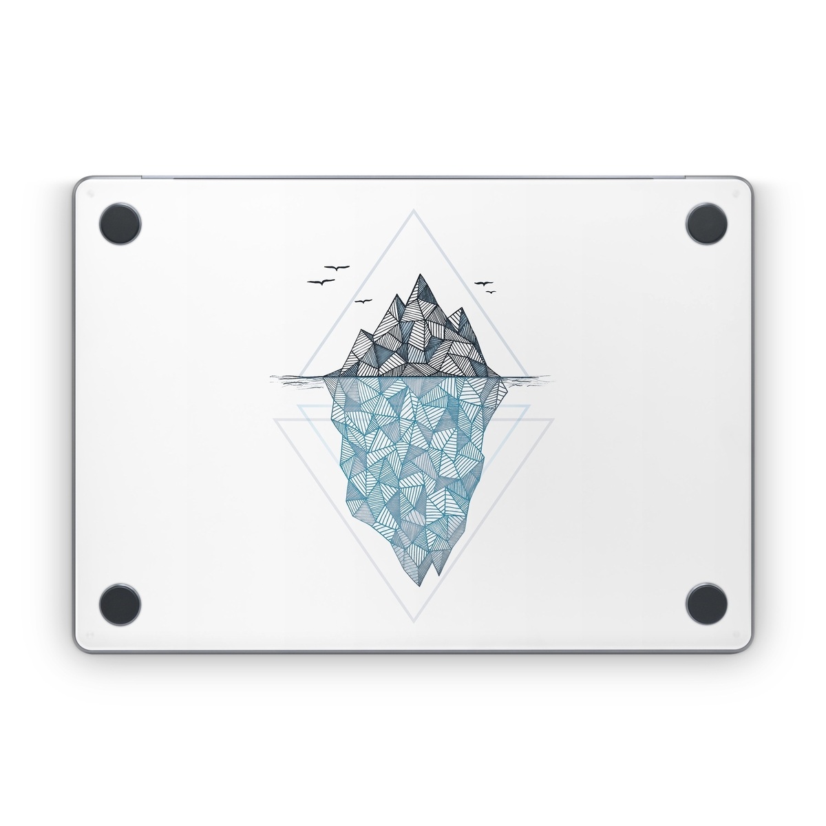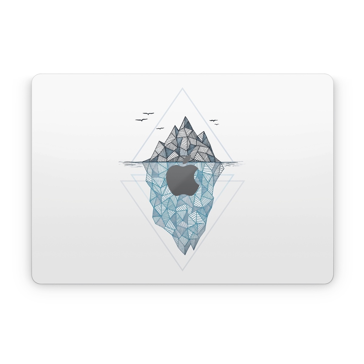 iStyles Apple MacBook Skin design of Line, Illustration, Design, Symmetry, Pattern, Triangle, Art, with white, black, gray, blue colors, and tagged with animals, nature, patterns, arctic, blue, cold, frost, ice, iceberg, snow, winter.