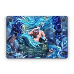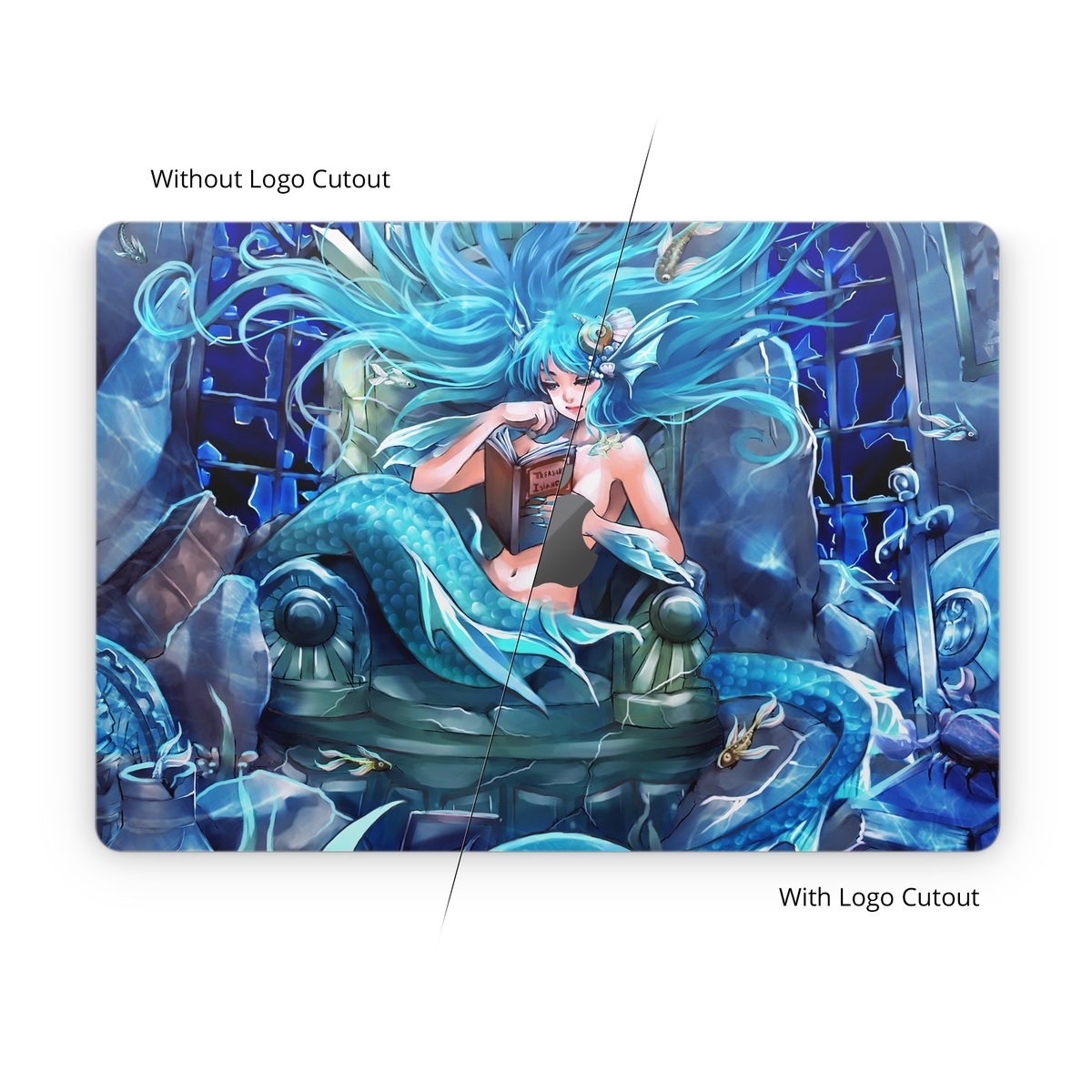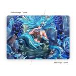 iStyles Apple MacBook Skin design of Cg artwork, Fictional character, Electric blue, Illustration, Art, Mythology, Dragon, Games, Mythical creature, with blue, black, yellow, white colors, and tagged with people, objects, animals, fantasy, fantasy, fish, mermaid, ocean, sea, seashells, treasures.
