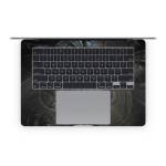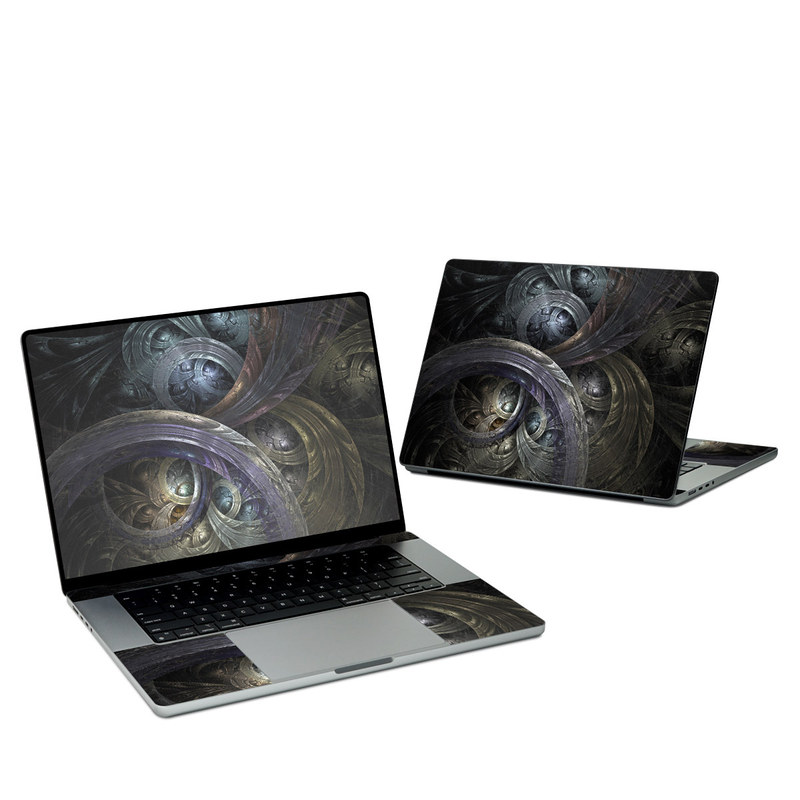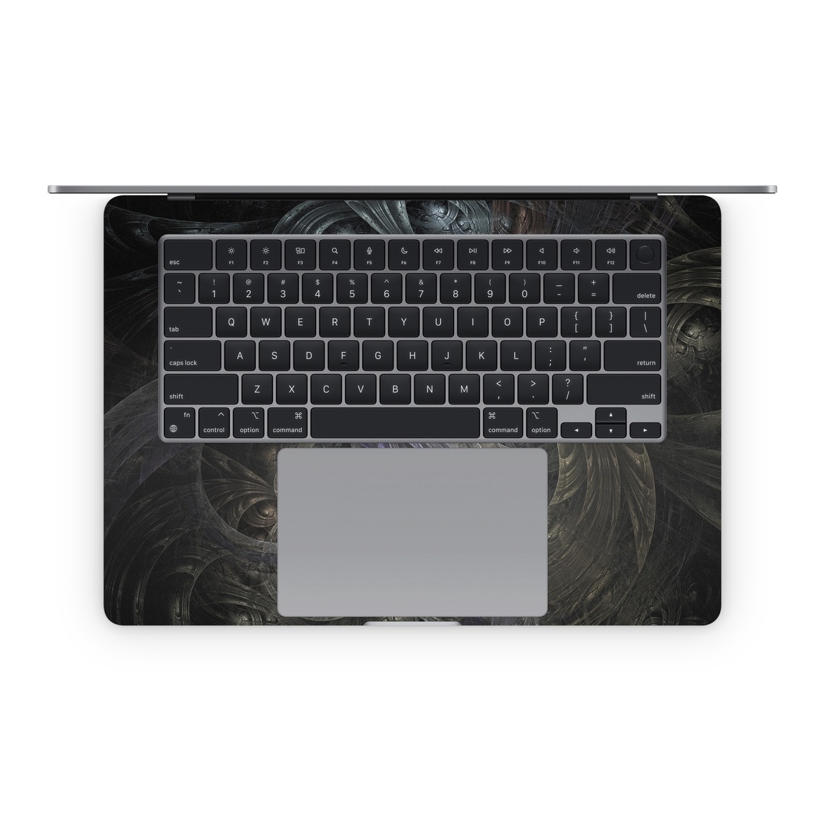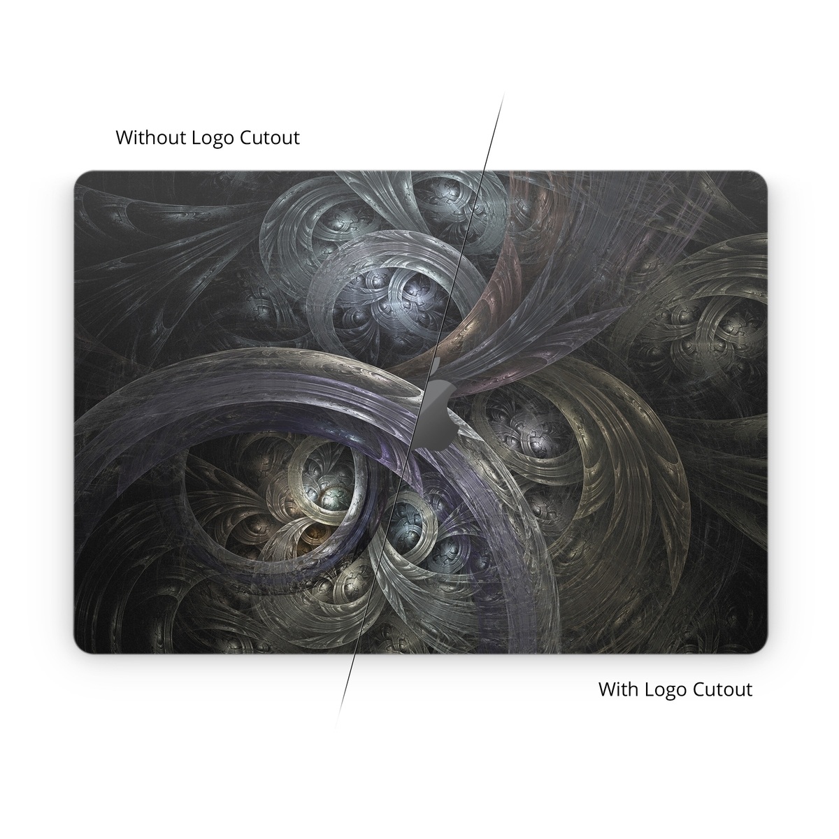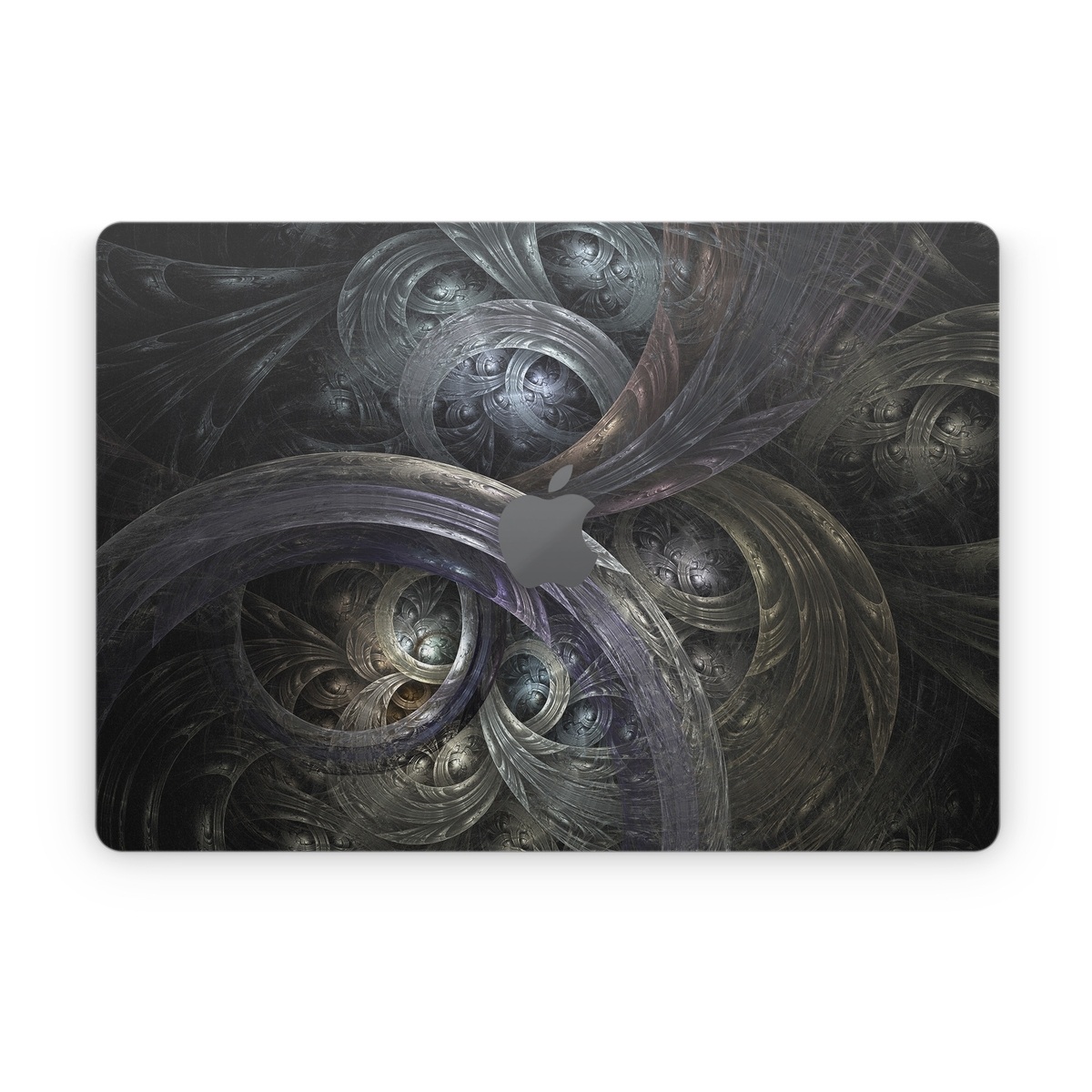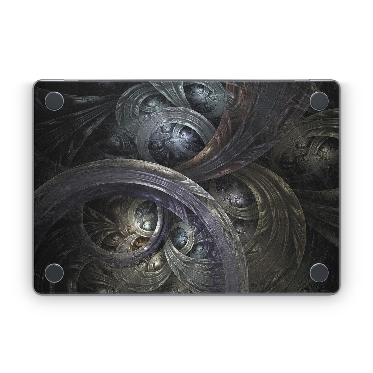 iStyles Apple MacBook Skin design of Fractal art, Graphic design, Art, Cg artwork, Darkness, Circle, Pattern, Illustration, Graphics, Metal, with black, gray, blue colors, and tagged with fractals.