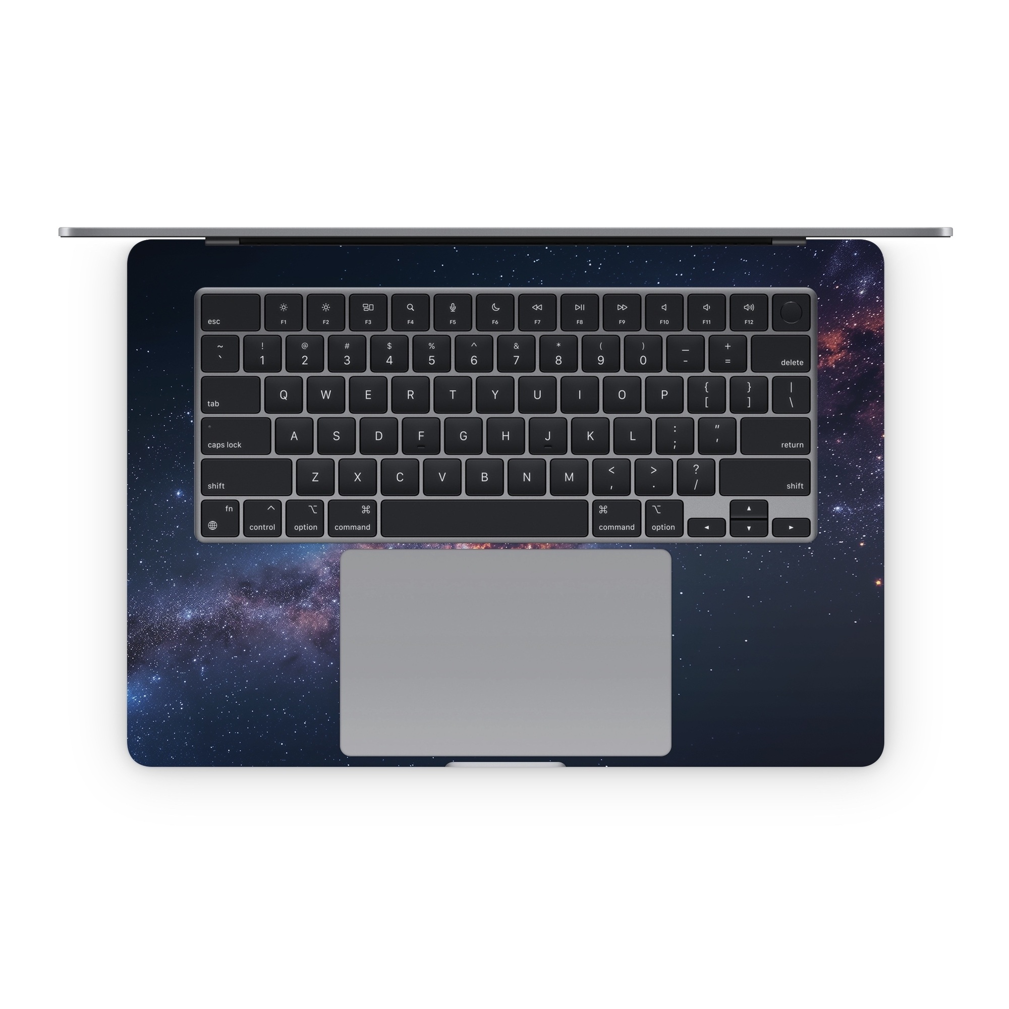 iStyles Apple MacBook Skin design of Atmosphere, Sky, Nature, World, Nebula, Galaxy, Astronomical object, Atmospheric phenomenon, Milky way, Star, with black, blue, white, yellow, orange, red, purple, gray colors, and tagged with space, space, galaxy, solar, system, far, away.