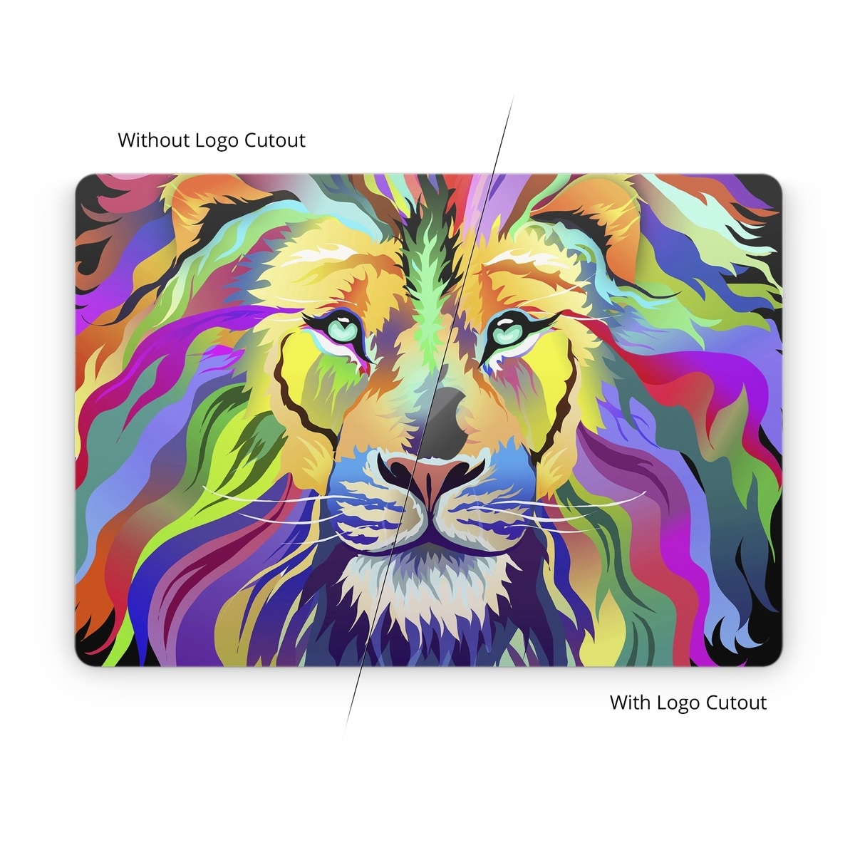 The large lid Skins are not cut to fit absolutely precisely with zero tolerance. There're cut very slightly smaller (1 to 2 mm all around) to allow for slight stretching during the application. The Skin has to be centered on the lid (around the Apple logo) and if applied without stretching, will result in a silver "frame" of the artwork. If the Skins are cut precisely to the lid size, most people will end up with Skin edges that overhang the edge. A slightly smaller cut allows for a more "forgiving" Skin application. In fact, if you're careful, you can very gently stretch the whole piece into place for a perfect fit during the Skin application, but it's easiest to simply centre it.