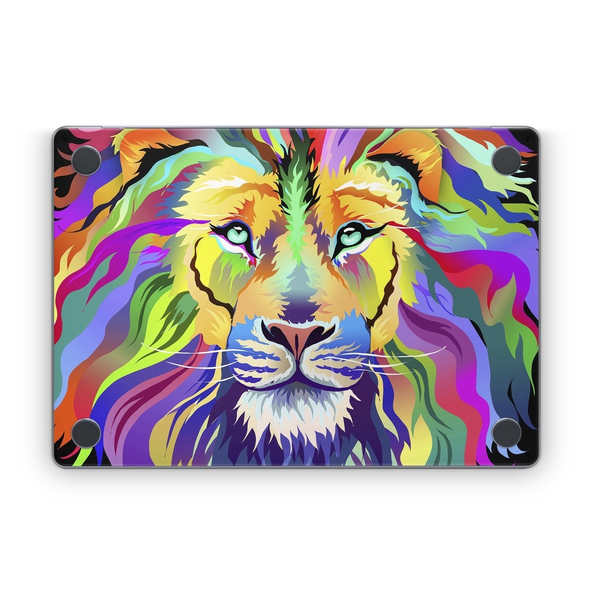 iStyles Apple MacBook Skin design of Bengal tiger, Felidae, Lion, Wildlife, Big cats, Tiger, Carnivore, Art, Illustration, Painting, with orange, yellow, green, red, pink, blue, purple colors, and tagged with animals.