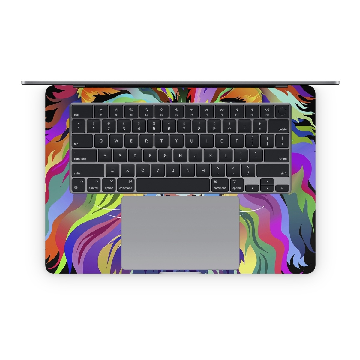 The MacBook inner Skins are precision cut to cover the area around the keyboard - the complexity and large size of this surface does make Skin alignment a little more tricky but the final effect when it's done properly is well worth the effort. What we generally do during Skin application is to first align the Skin to the major physical cutouts, and in this case, that will be the trackpad area. Peel the whole inner Skin off and start with the bottom half; hold the Skin at both ends of the wrist rest area and gently position until it aligns perfectly to the trackpad. One trick will be to keep the top half (the thin stripes that go beside the keyboard) folded back over the bottom half such that the stripes do not get stuck on your MacBook when you're positioning the bottom half. Once you've aligned the trackpad, everything else will fall in place with a little guidance.