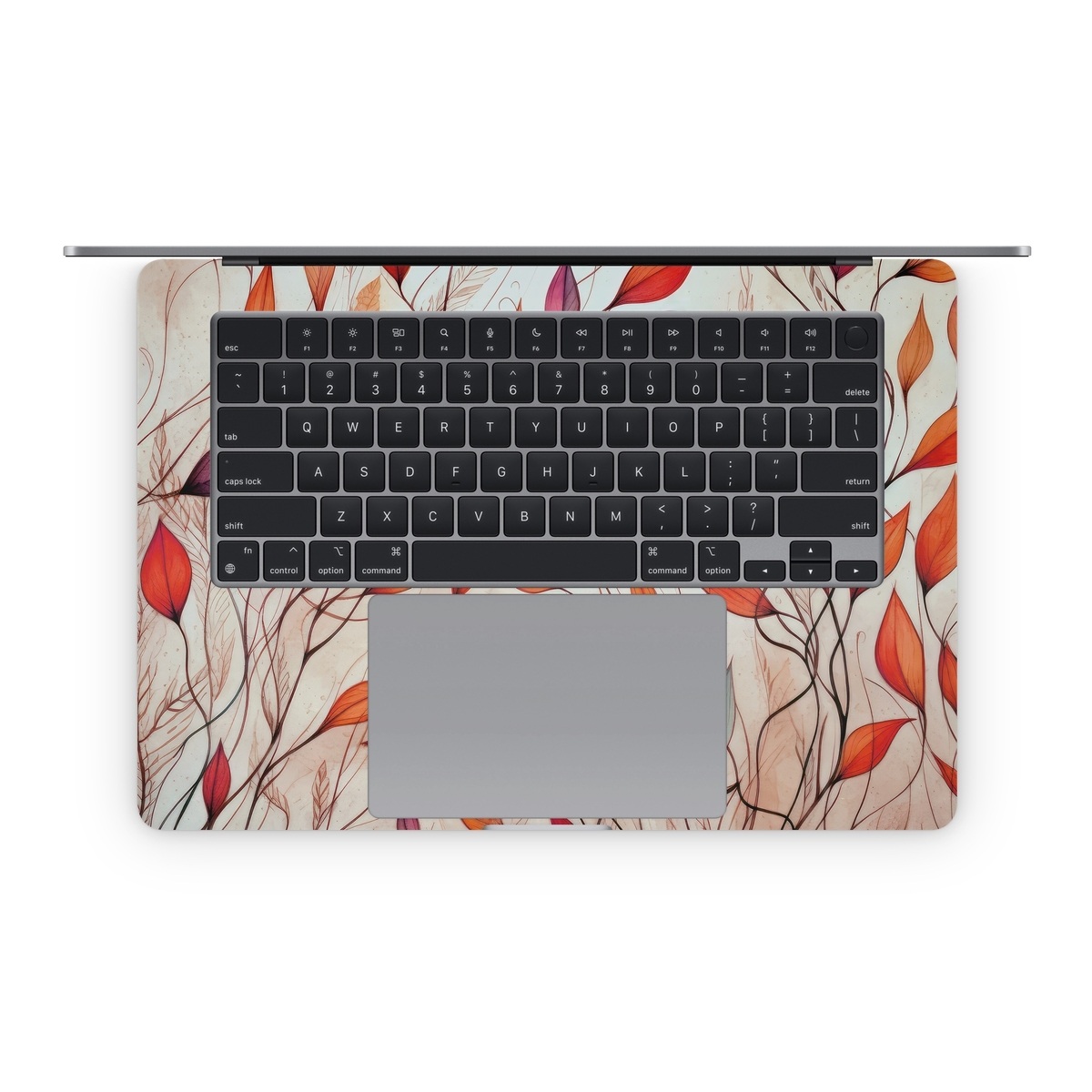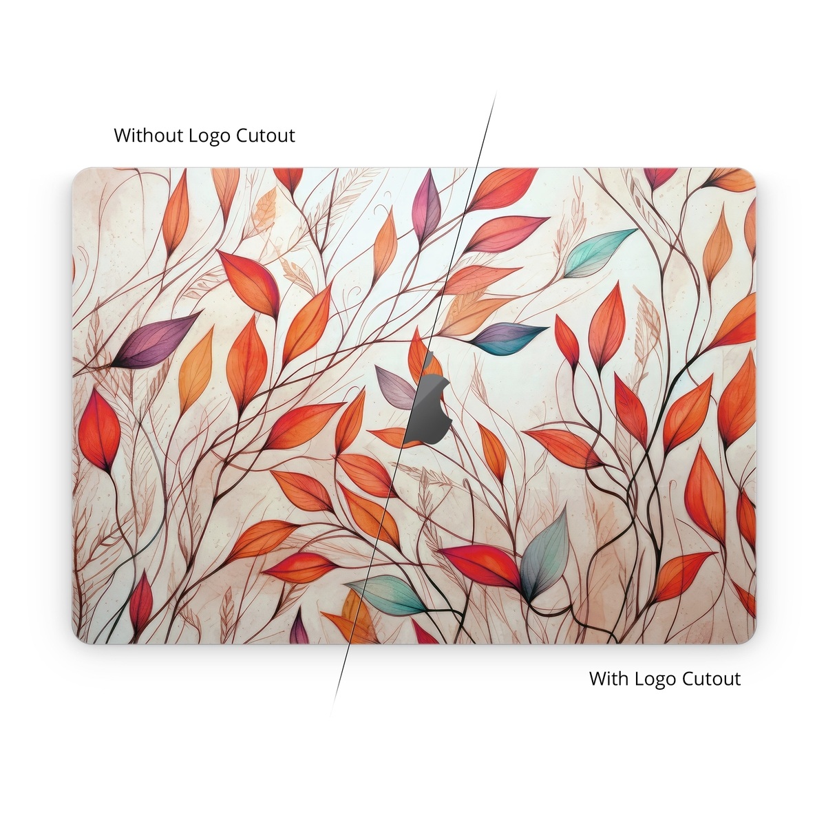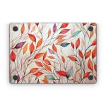 iStyles Apple MacBook Skin design of Plant, Vertebrate, Art paint, Nature, Botany, Leaf, Branch, Twig, Textile, Orange, with yellow, orange, red, white, brown, blue colors, and tagged with nature, autumn, fall, leaves.