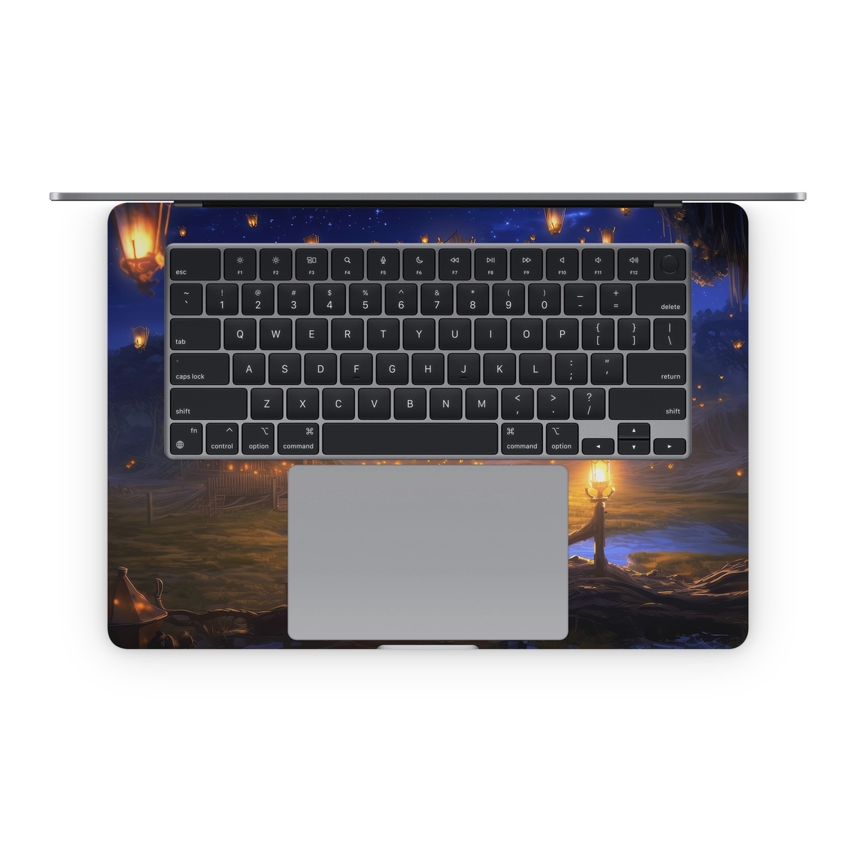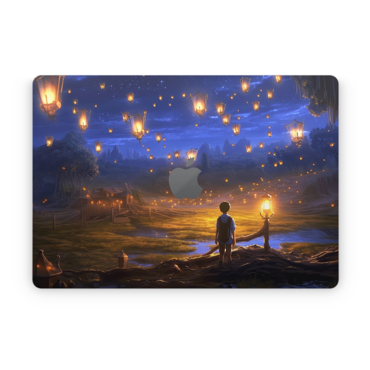 iStyles Apple MacBook Skin design of Cloud, World, Nature, Sky, People in nature, Happy, Flash photography, Natural landscape, Horizon, Heat, with black, blue, orange, yellow, gray, purple, orange, green colors, and tagged with fineart, objects, people, fantasy, nature, urban, floating, lanterns, boy, sky, landscape.