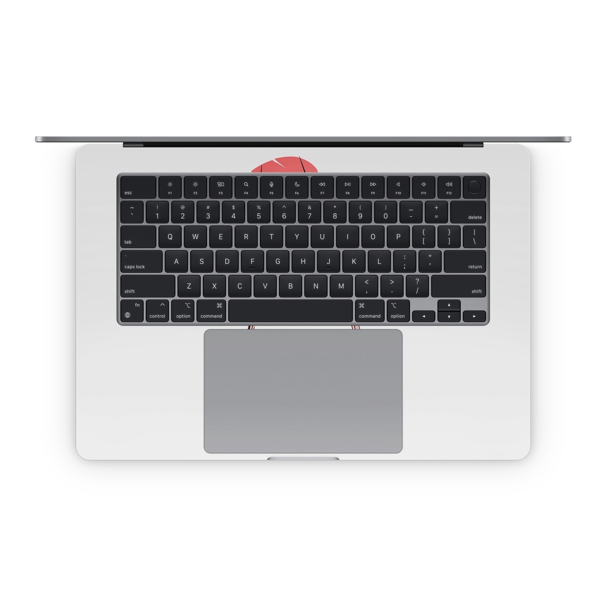 The MacBook inner Skins are precision cut to cover the area around the keyboard - the complexity and large size of this surface does make Skin alignment a little more tricky but the final effect when it's done properly is well worth the effort. What we generally do during Skin application is to first align the Skin to the major physical cutouts, and in this case, that will be the trackpad area. Peel the whole inner Skin off and start with the bottom half; hold the Skin at both ends of the wrist rest area and gently position until it aligns perfectly to the trackpad. One trick will be to keep the top half (the thin stripes that go beside the keyboard) folded back over the bottom half such that the stripes do not get stuck on your MacBook when you're positioning the bottom half. Once you've aligned the trackpad, everything else will fall in place with a little guidance.