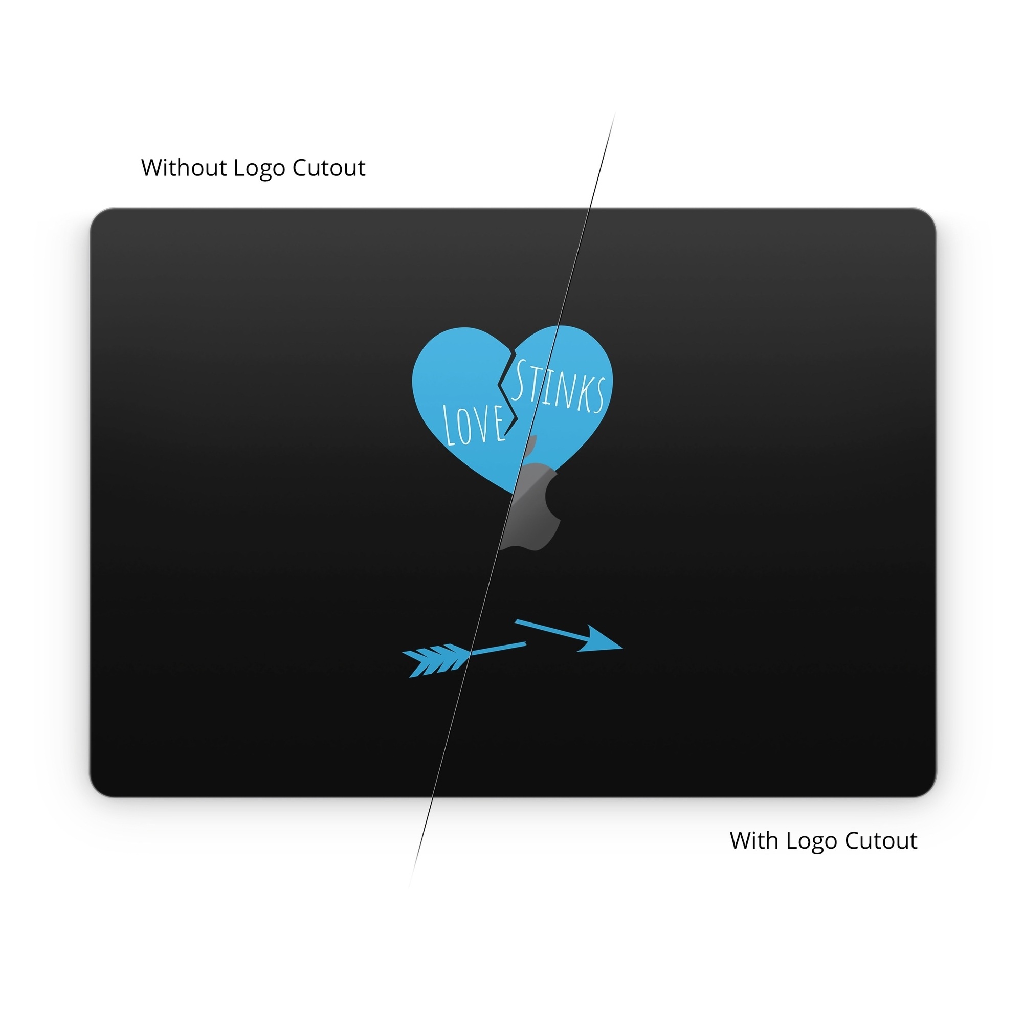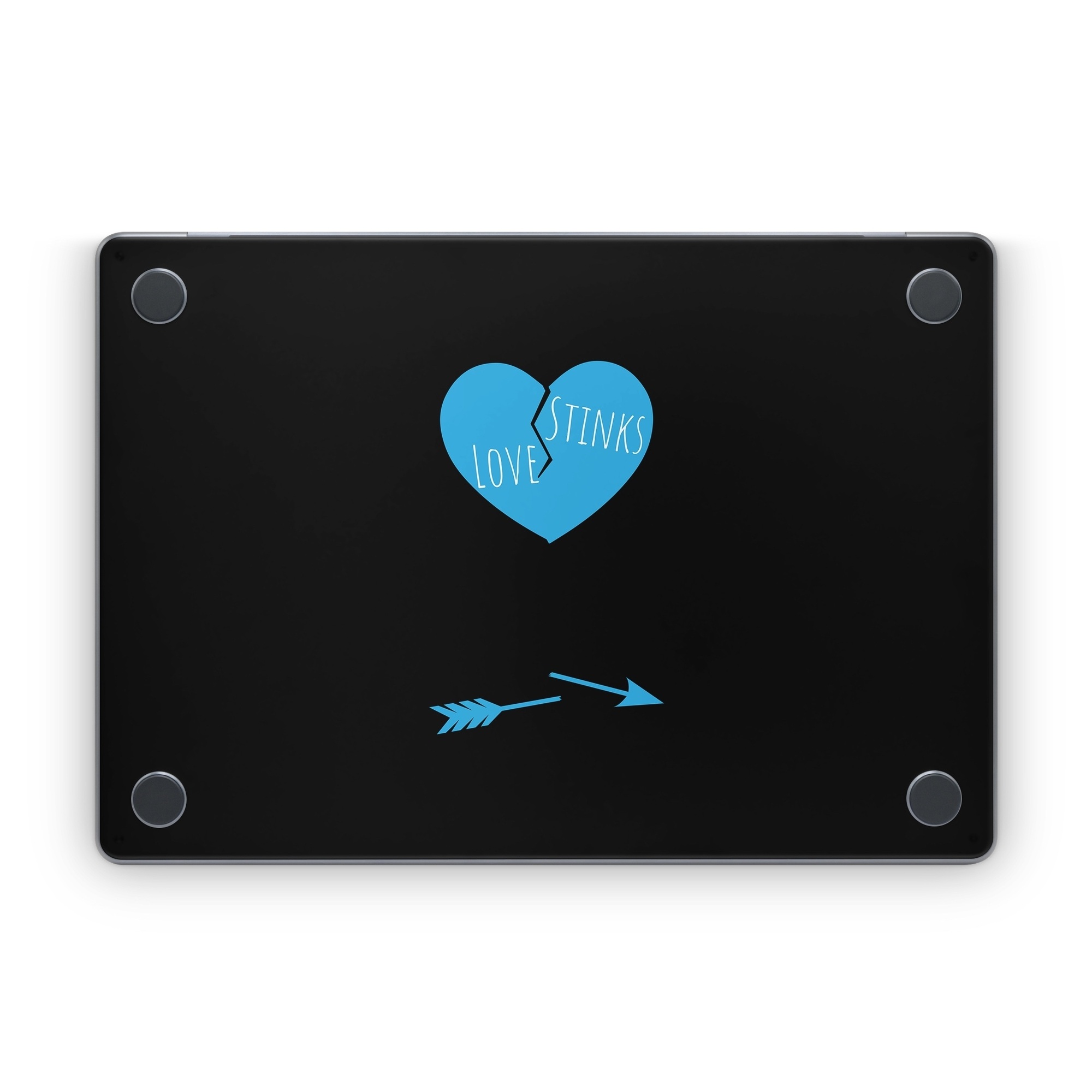 iStyles Apple MacBook Skin design of Human body, Gesture, Font, Electric blue, Art, Magenta, Circle, Logo, Symbol, Pattern, with black, red, white colors, and tagged with objects, hearts, signs, broken, heart, arrow, love, stinks.
