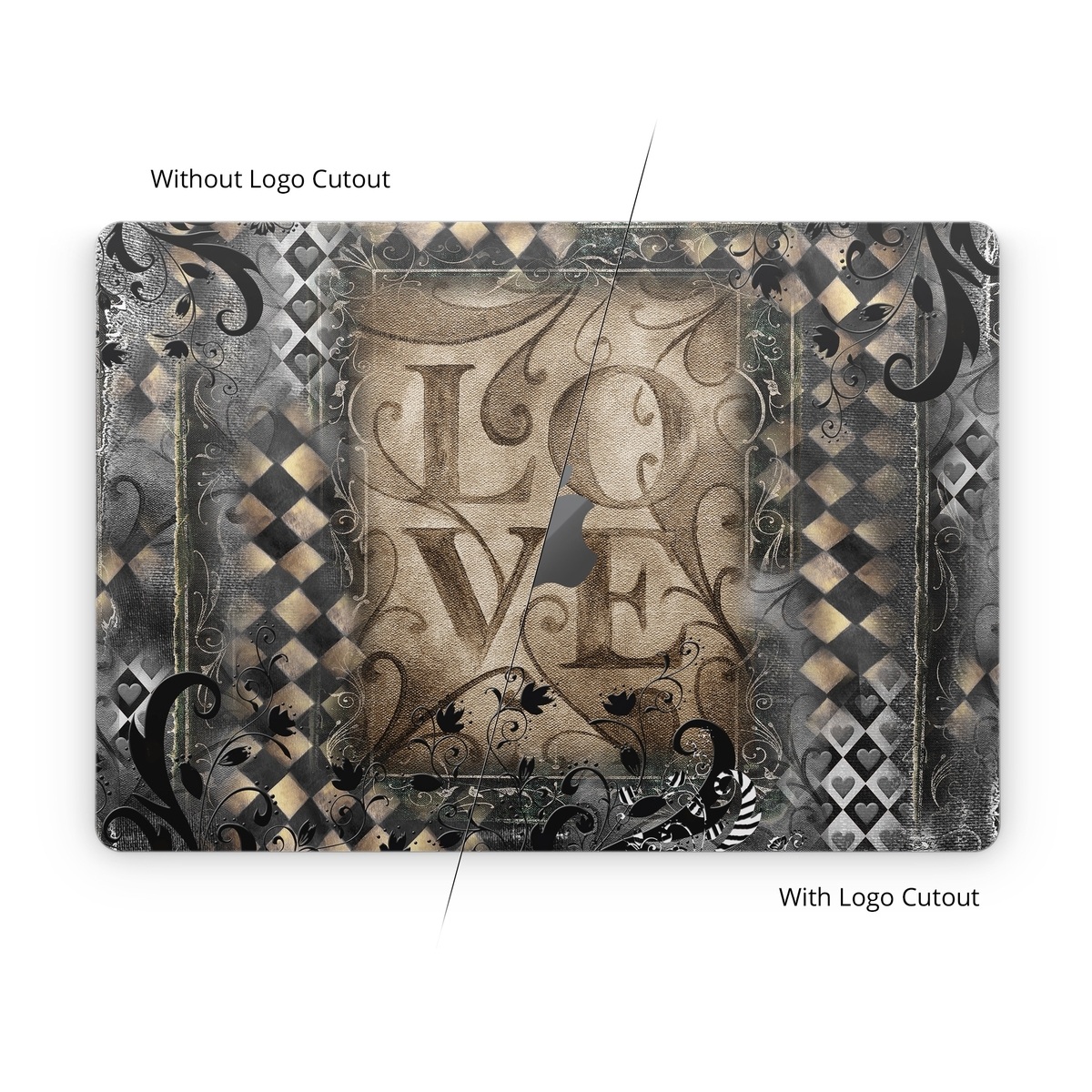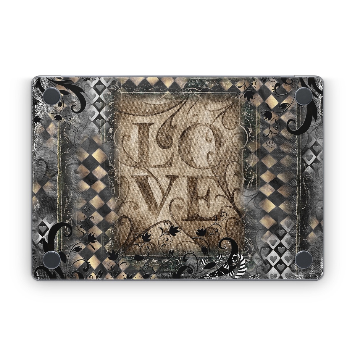 iStyles Apple MacBook Skin design of Pattern, Brown, Design, Textile, Art, with black, gray, green, red colors, and tagged with patterns, hearts.