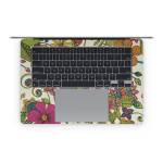 iStyles Apple MacBook Skin design of Pattern, Floral design, Motif, Design, Visual arts, Botany, Pedicel, Flower, Plant, Textile, with green, pink, orange, blue colors, and tagged with flowers, patterns, bright, colorful, flowers, pattern.