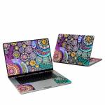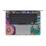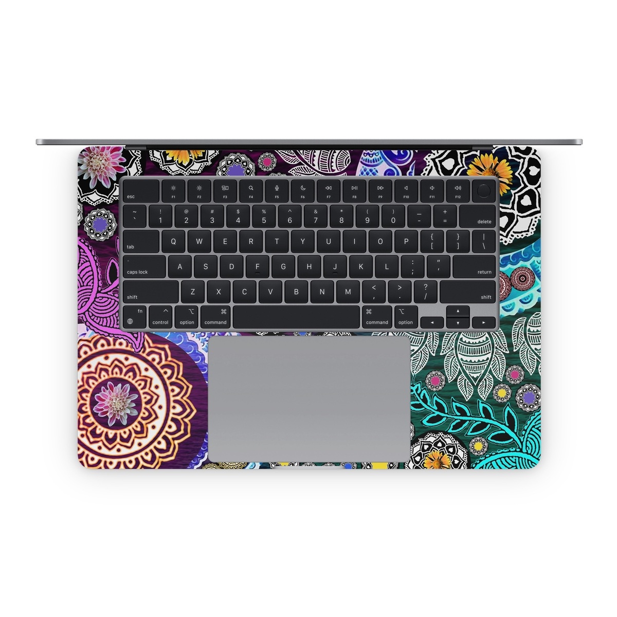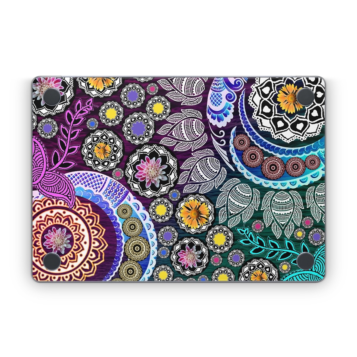 iStyles Apple MacBook Skin design of Pattern, Psychedelic art, Art, Visual arts, Design, Floral design, Textile, Motif, Circle, Illustration, with black, gray, purple, blue, green, red colors, and tagged with patterns, flowers.