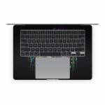 The MacBook inner Skins are precision cut to cover the area around the keyboard - the complexity and large size of this surface does make Skin alignment a little more tricky but the final effect when it's done properly is well worth the effort. What we generally do during Skin application is to first align the Skin to the major physical cutouts, and in this case, that will be the trackpad area. Peel the whole inner Skin off and start with the bottom half; hold the Skin at both ends of the wrist rest area and gently position until it aligns perfectly to the trackpad. One trick will be to keep the top half (the thin stripes that go beside the keyboard) folded back over the bottom half such that the stripes do not get stuck on your MacBook when you're positioning the bottom half. Once you've aligned the trackpad, everything else will fall in place with a little guidance.